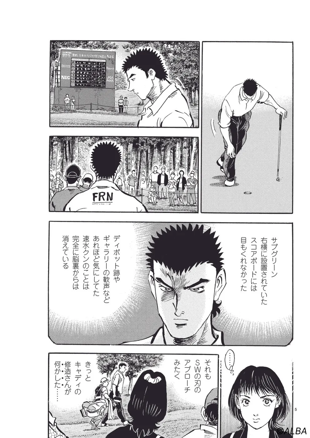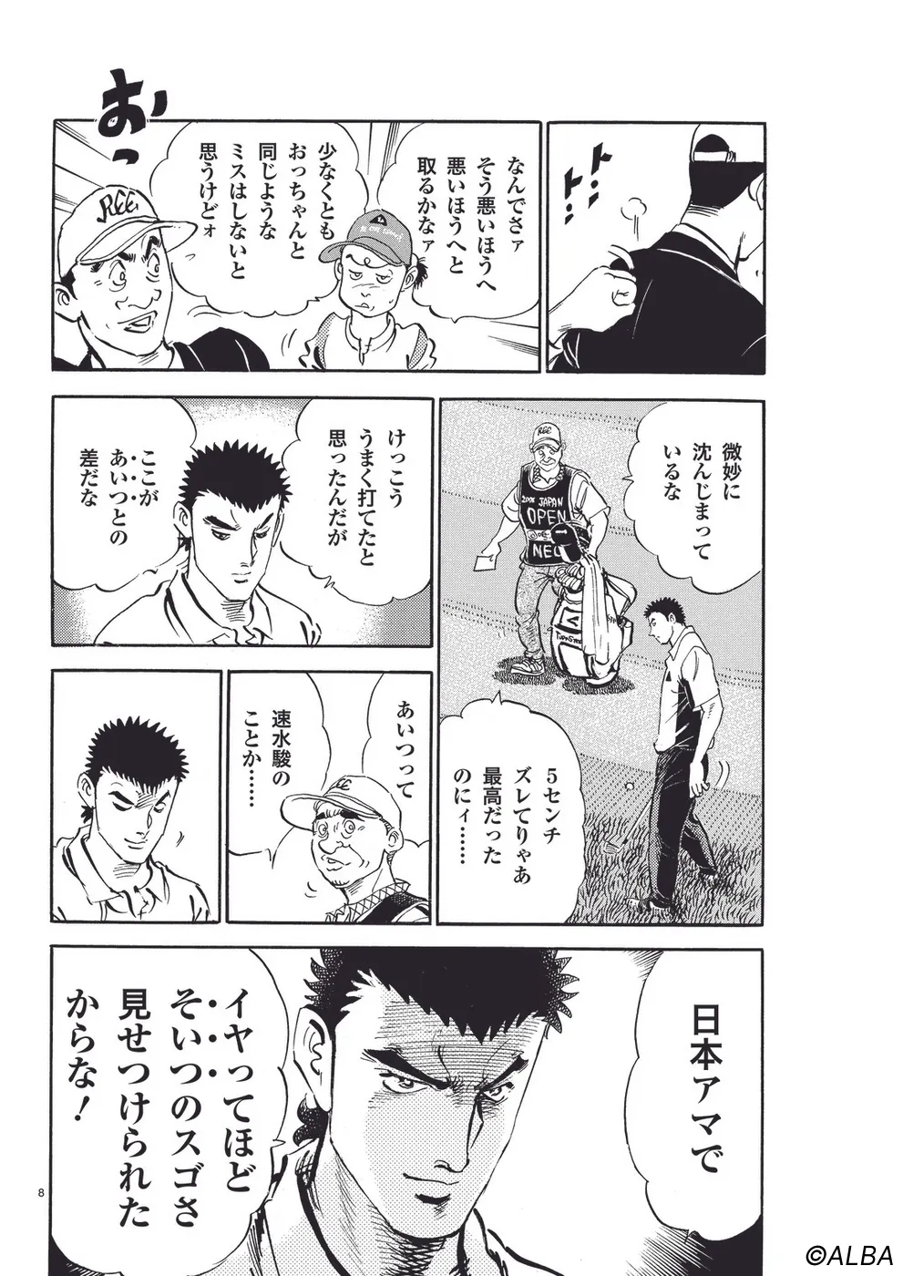 【第40巻あらすじ】龍ヶ崎CCを舞台とした日本オープン。初日9番ホールでまさかのダブルパーをたたいた一丸だったが、その後は落ち着いた試合運びでスコアを縮めていく。これからのゴルフ人生を左右する大会での予選通過、そしてライバル速水との戦いに向けて動き出す!