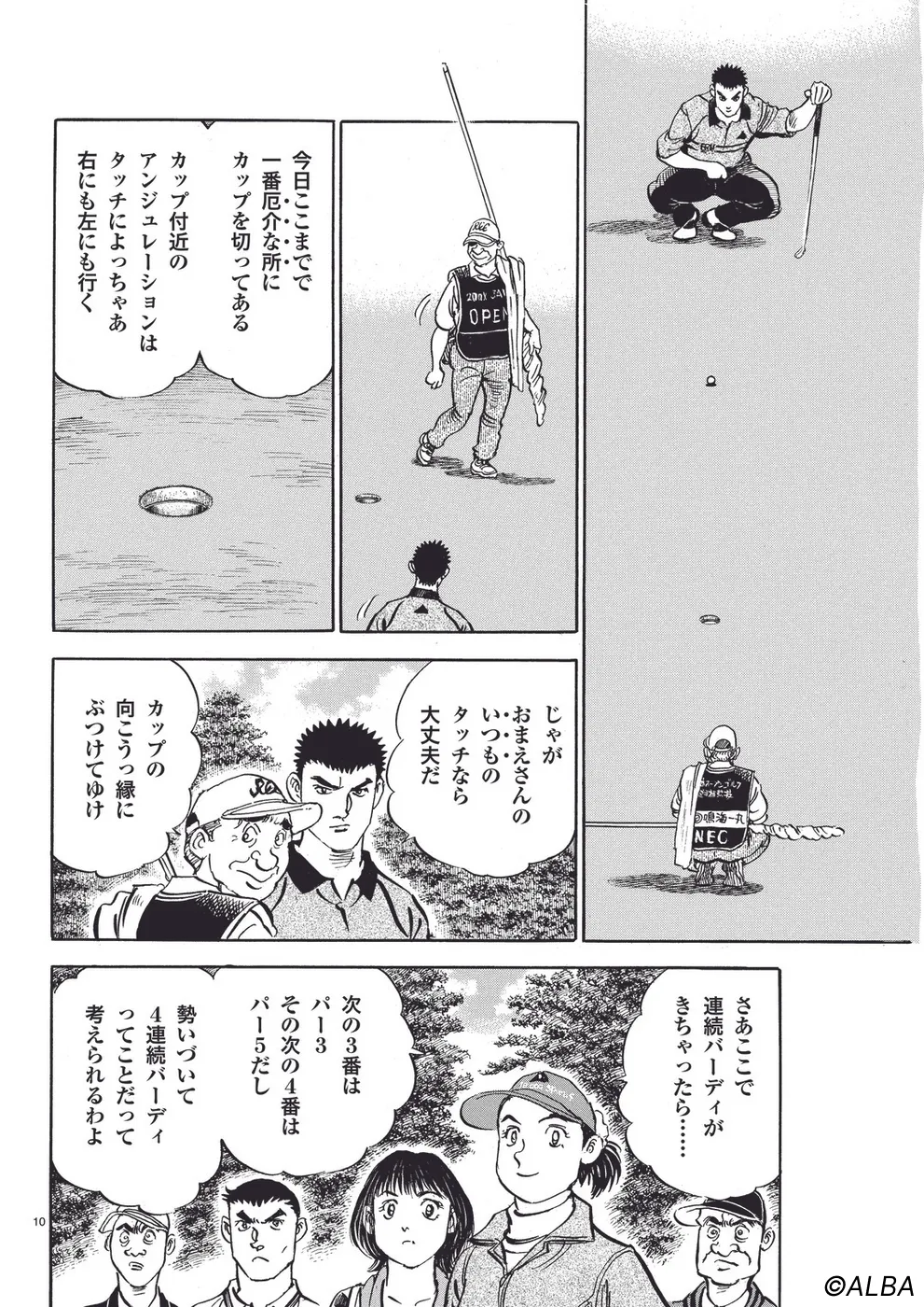【第41巻あらすじ】日本オープン二日目。予選通過に向けて難コースに立ち向かう一丸だが、あらゆる場面で速水の気配を感じながらのラウンドに。さらにキャディを務める玉木の足も限界が近づく。さまざまな不安要素を抱えながら予選通過を目指す。