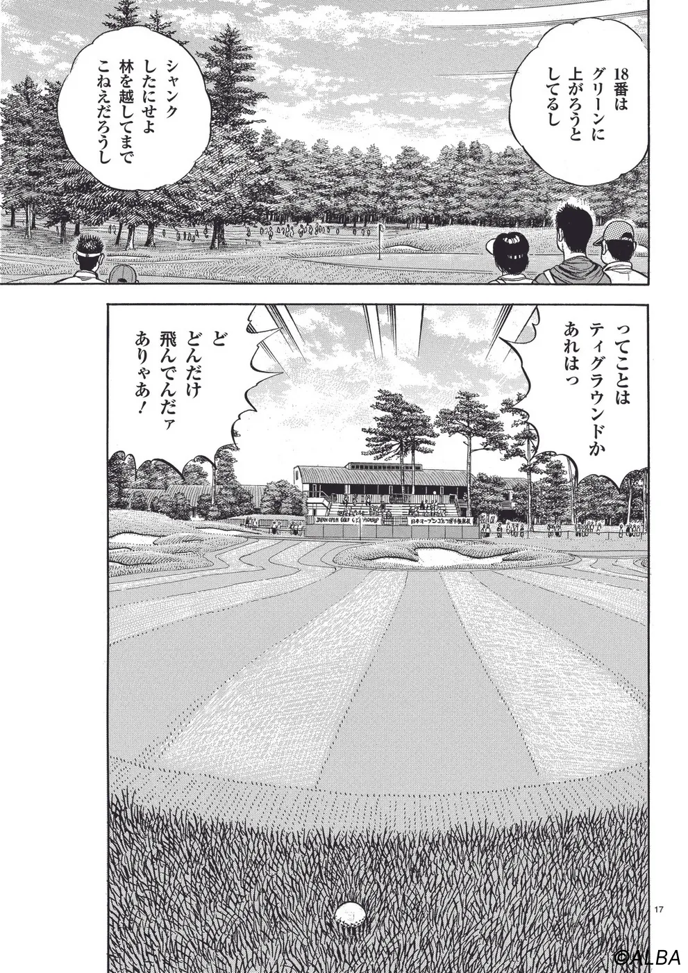 【第41巻あらすじ】日本オープン二日目。予選通過に向けて難コースに立ち向かう一丸だが、あらゆる場面で速水の気配を感じながらのラウンドに。さらにキャディを務める玉木の足も限界が近づく。さまざまな不安要素を抱えながら予選通過を目指す。