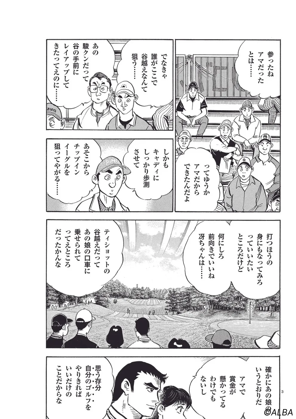 【第42巻あらすじ】日本オープン二日目。初日からキャディを務めた玉木修造が負傷したため、急きょ娘の冴が一丸のバッグを担ぐことに。そんなトラブルにも負けず、見事予選通過を果たした一丸の決勝ラウンド同組は若手のホープ・速水駿。天才を相手に一丸はどう戦う!?