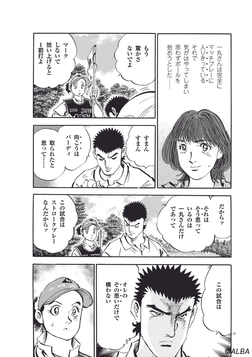 【第42巻あらすじ】日本オープン二日目。初日からキャディを務めた玉木修造が負傷したため、急きょ娘の冴が一丸のバッグを担ぐことに。そんなトラブルにも負けず、見事予選通過を果たした一丸の決勝ラウンド同組は若手のホープ・速水駿。天才を相手に一丸はどう戦う!?