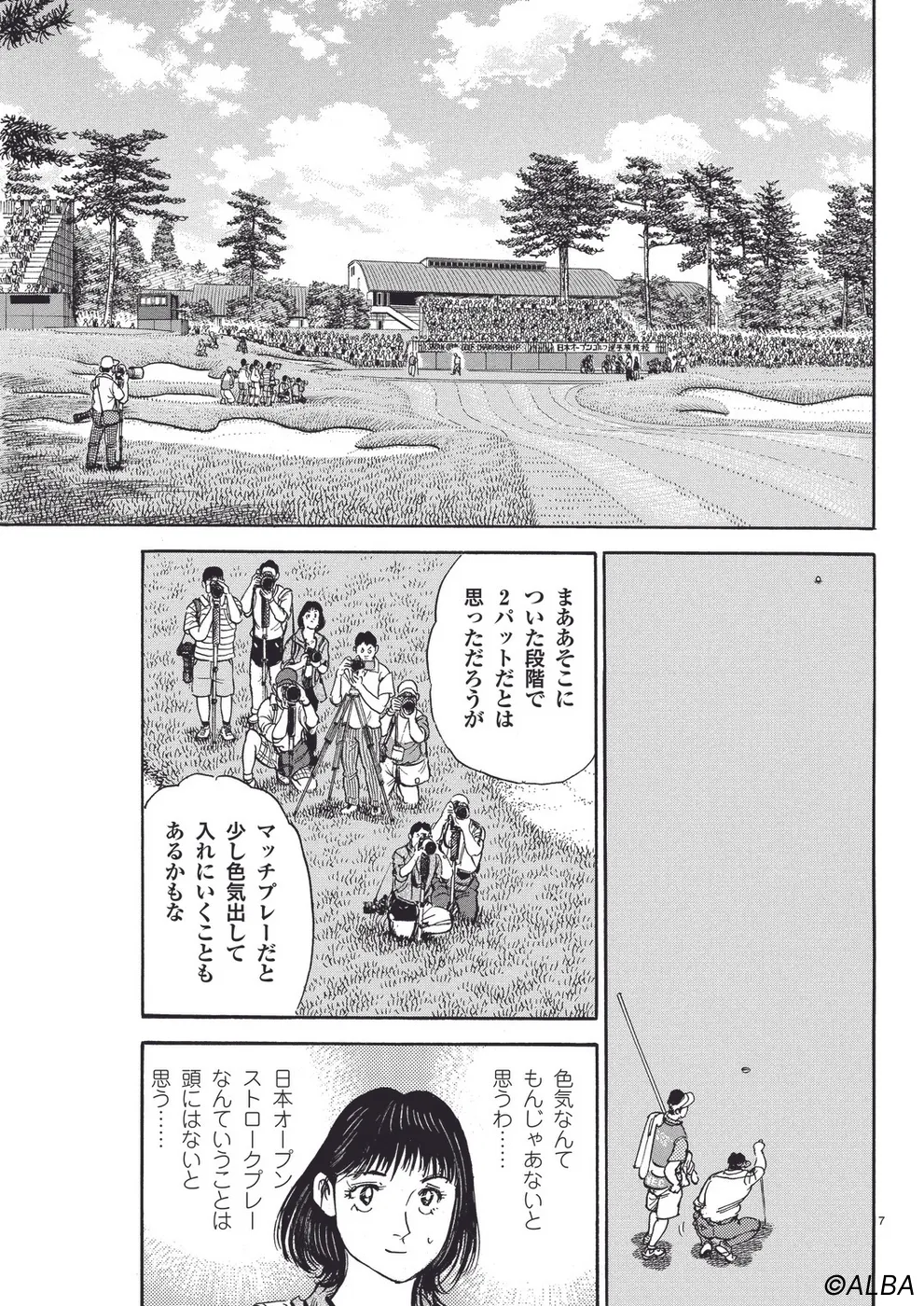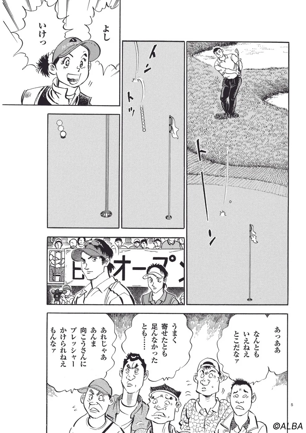 【第44巻あらすじ】日本オープン三日目。完全にマッチプレーの様相を呈してきた一丸と速水のライバル対決。お互いが持っている技を惜しみなく出し合い、無謀ともいえるクラブ選択や強気のパッティングの応酬など、一進一退の攻防を繰り広げる。