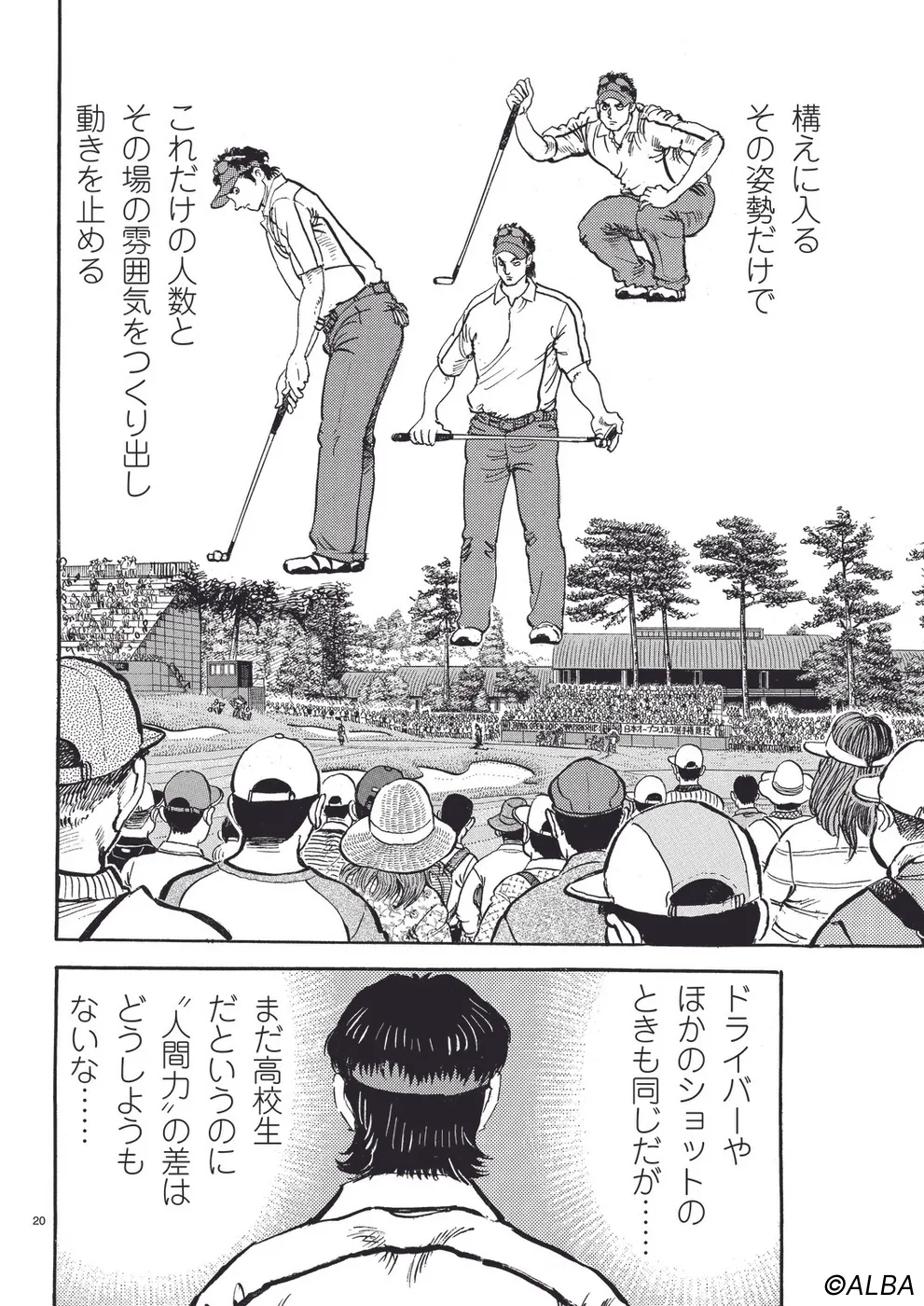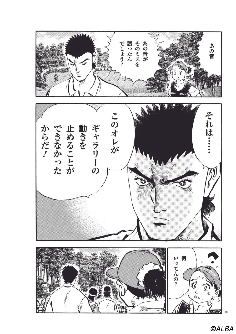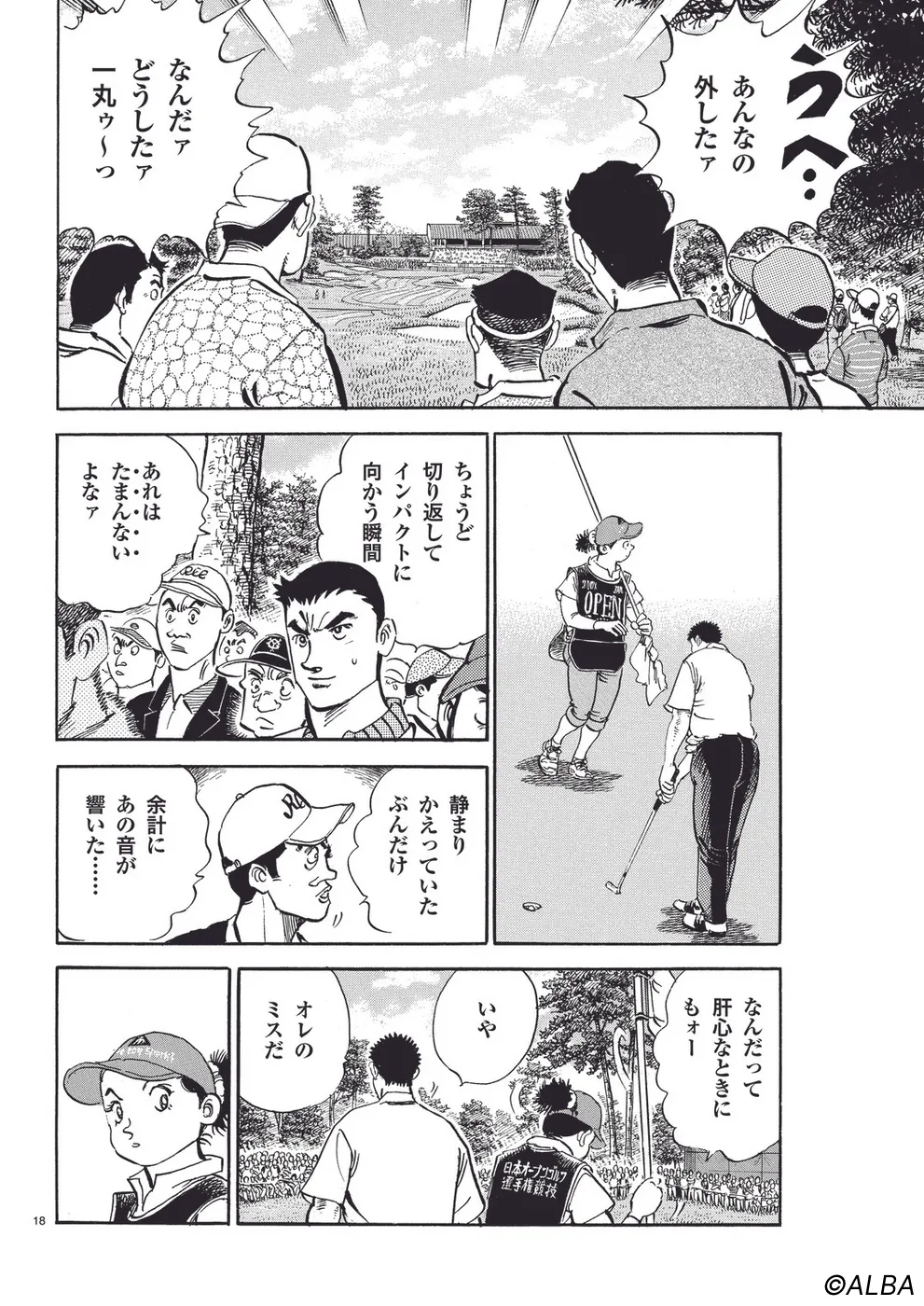 【第44巻あらすじ】日本オープン三日目。完全にマッチプレーの様相を呈してきた一丸と速水のライバル対決。お互いが持っている技を惜しみなく出し合い、無謀ともいえるクラブ選択や強気のパッティングの応酬など、一進一退の攻防を繰り広げる。