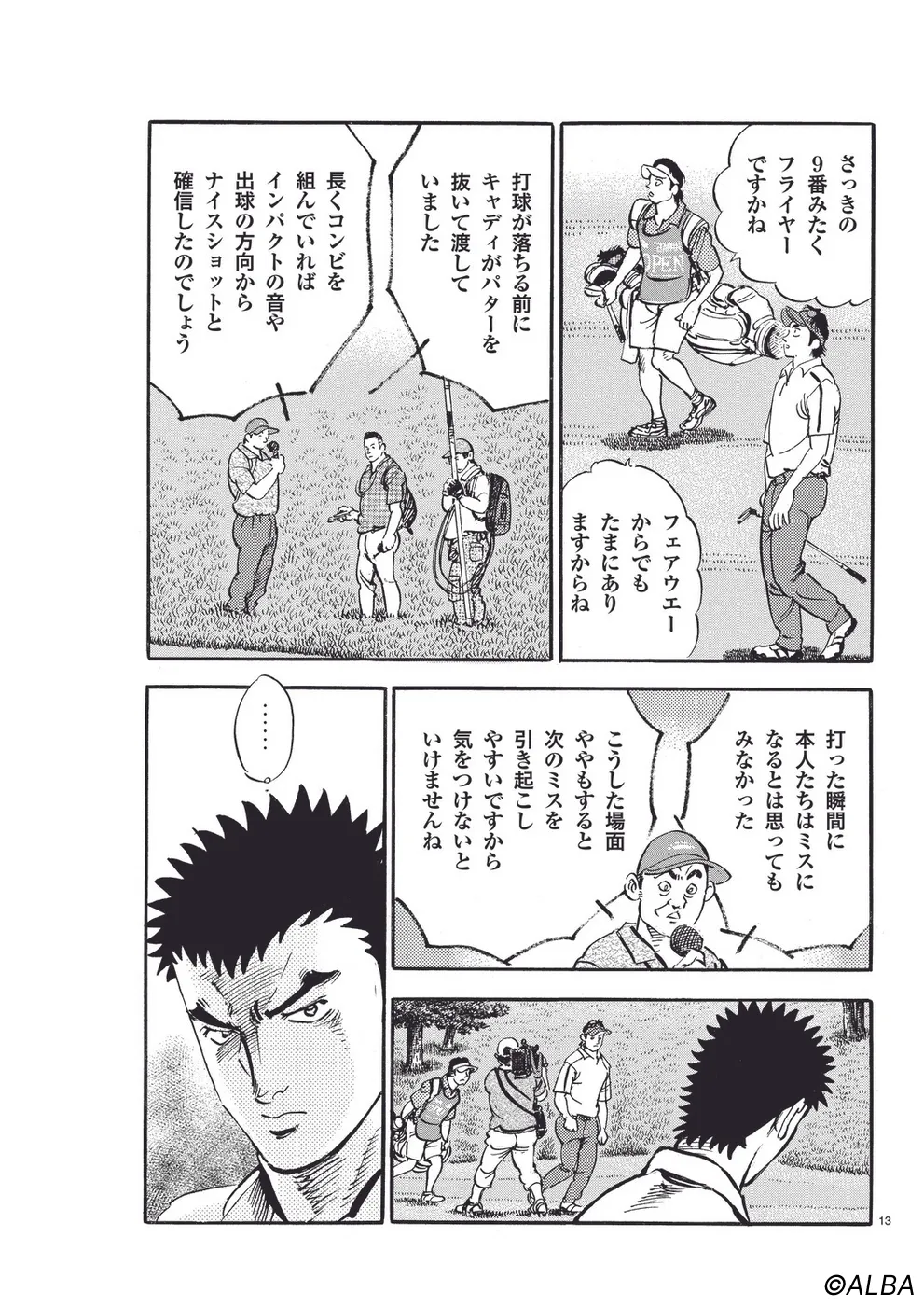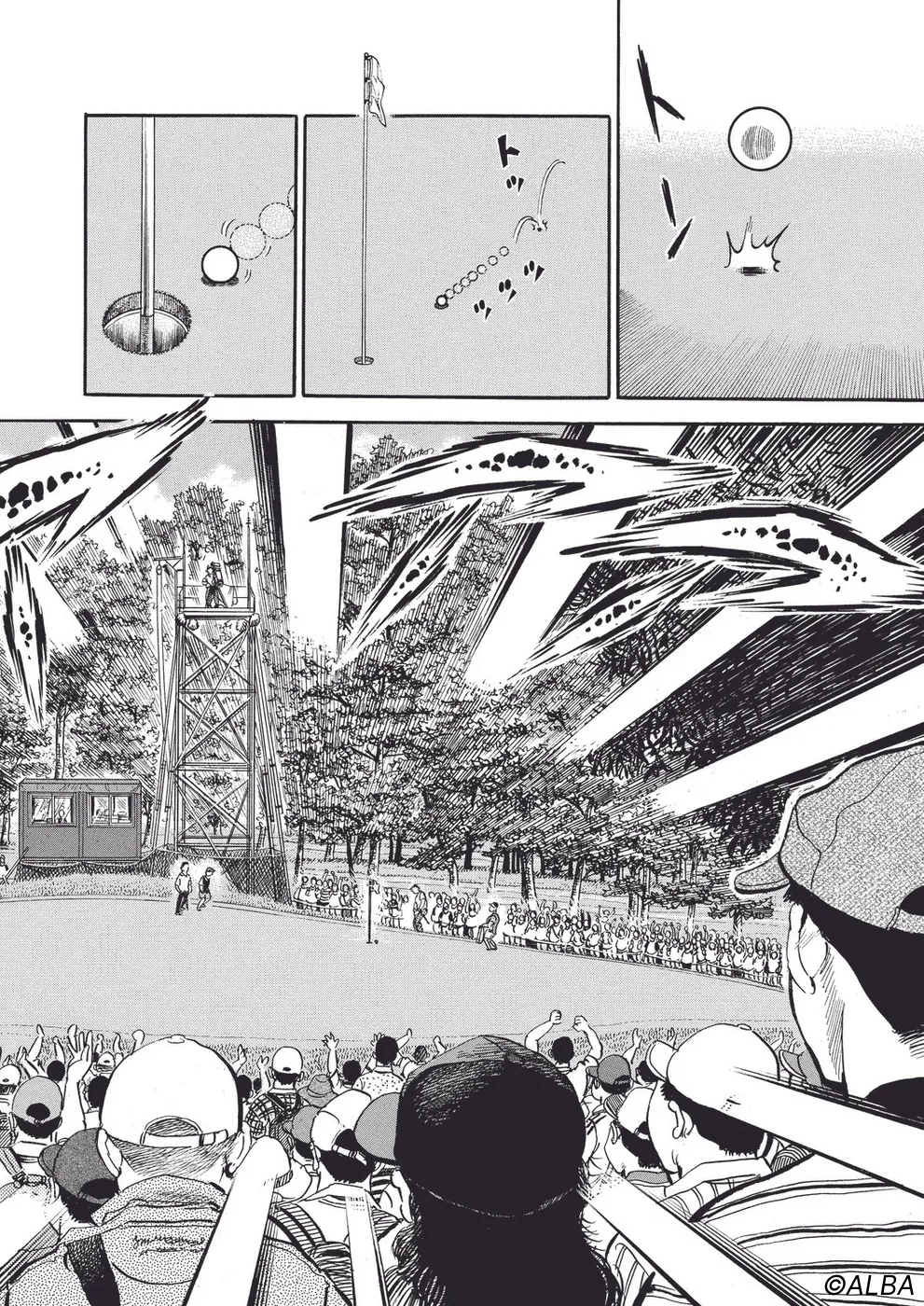 【第44巻あらすじ】日本オープン三日目。完全にマッチプレーの様相を呈してきた一丸と速水のライバル対決。お互いが持っている技を惜しみなく出し合い、無謀ともいえるクラブ選択や強気のパッティングの応酬など、一進一退の攻防を繰り広げる。