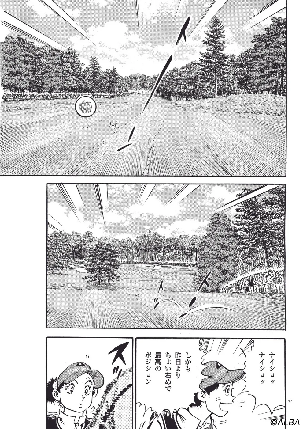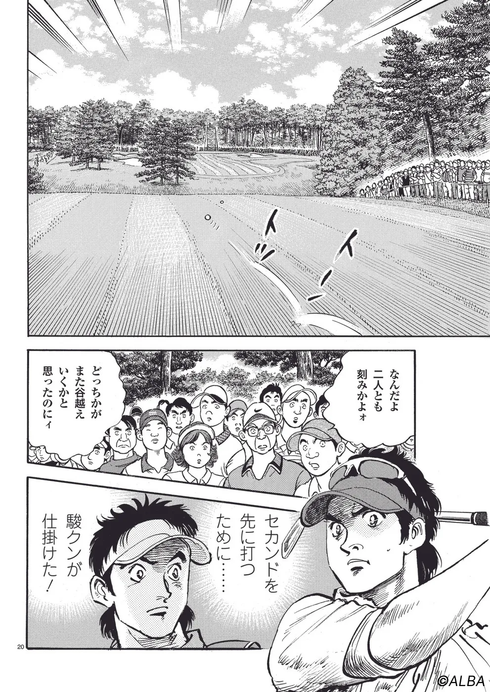 【第44巻あらすじ】日本オープン三日目。完全にマッチプレーの様相を呈してきた一丸と速水のライバル対決。お互いが持っている技を惜しみなく出し合い、無謀ともいえるクラブ選択や強気のパッティングの応酬など、一進一退の攻防を繰り広げる。