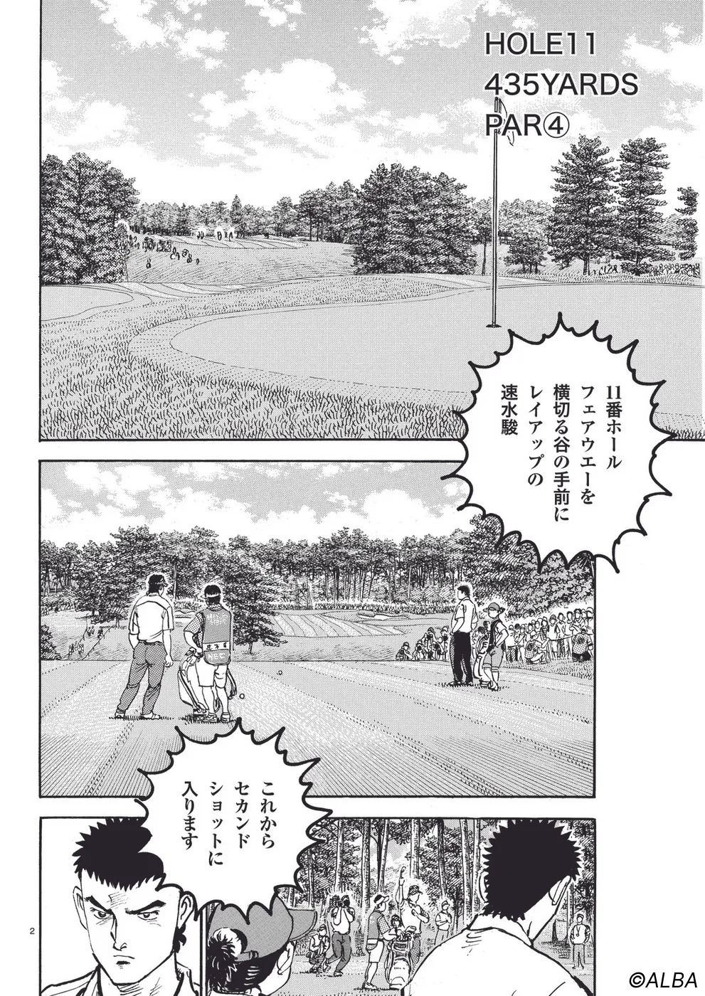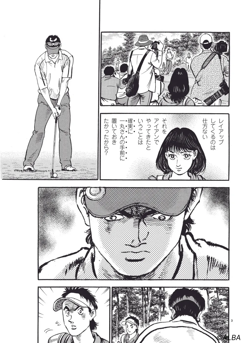 【第44巻あらすじ】日本オープン三日目。完全にマッチプレーの様相を呈してきた一丸と速水のライバル対決。お互いが持っている技を惜しみなく出し合い、無謀ともいえるクラブ選択や強気のパッティングの応酬など、一進一退の攻防を繰り広げる。