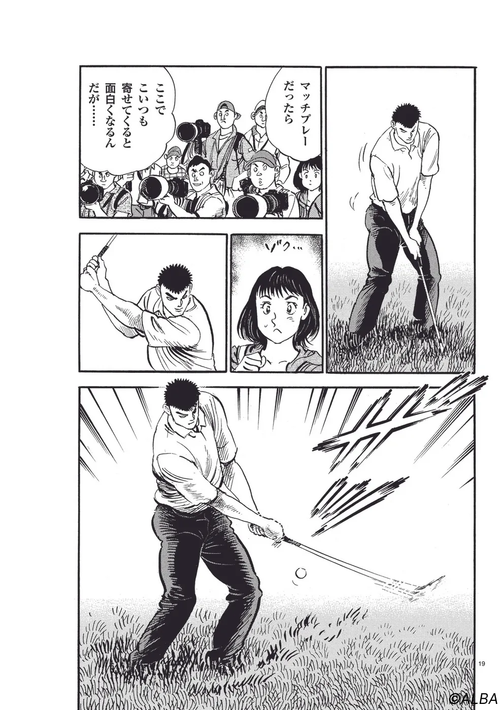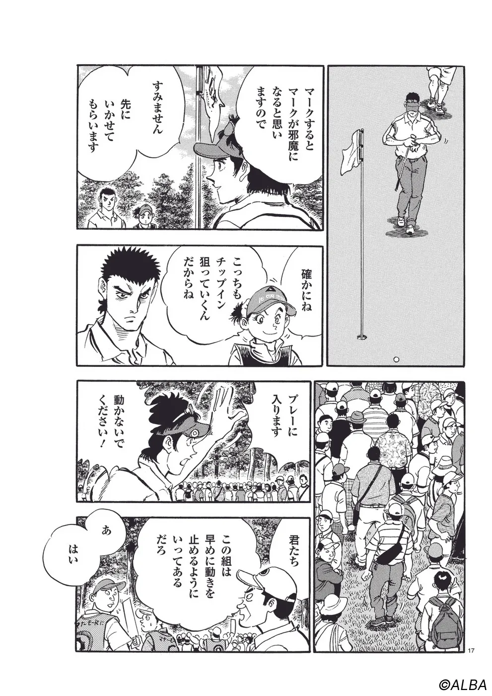 【第44巻あらすじ】日本オープン三日目。完全にマッチプレーの様相を呈してきた一丸と速水のライバル対決。お互いが持っている技を惜しみなく出し合い、無謀ともいえるクラブ選択や強気のパッティングの応酬など、一進一退の攻防を繰り広げる。