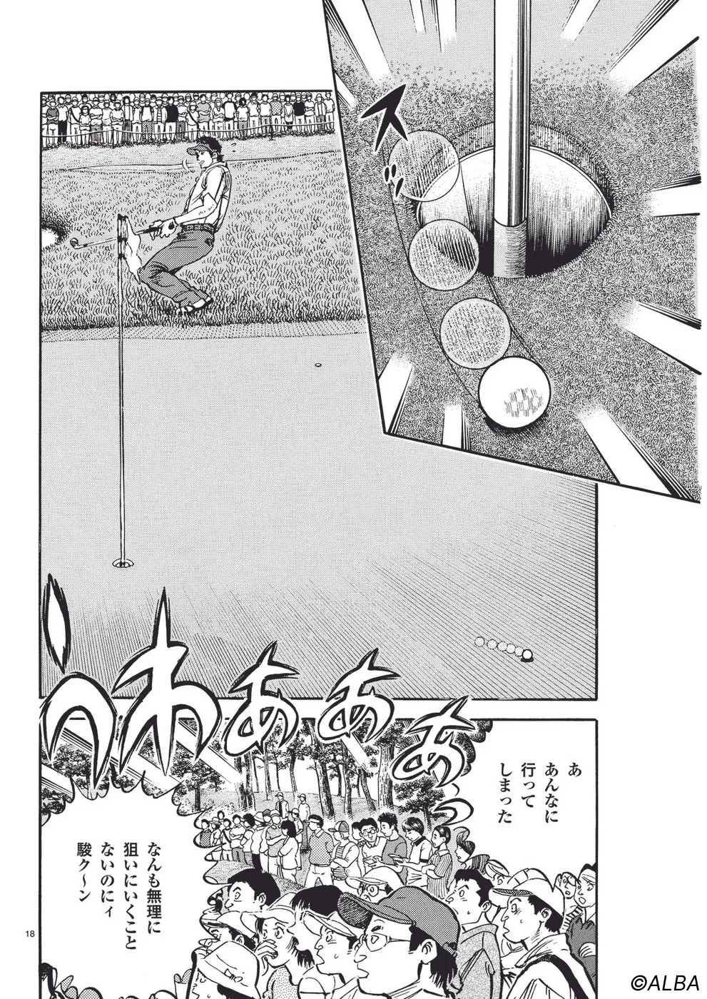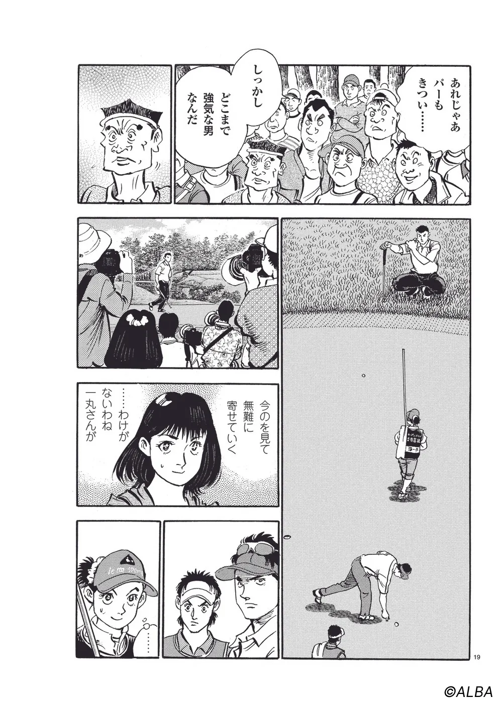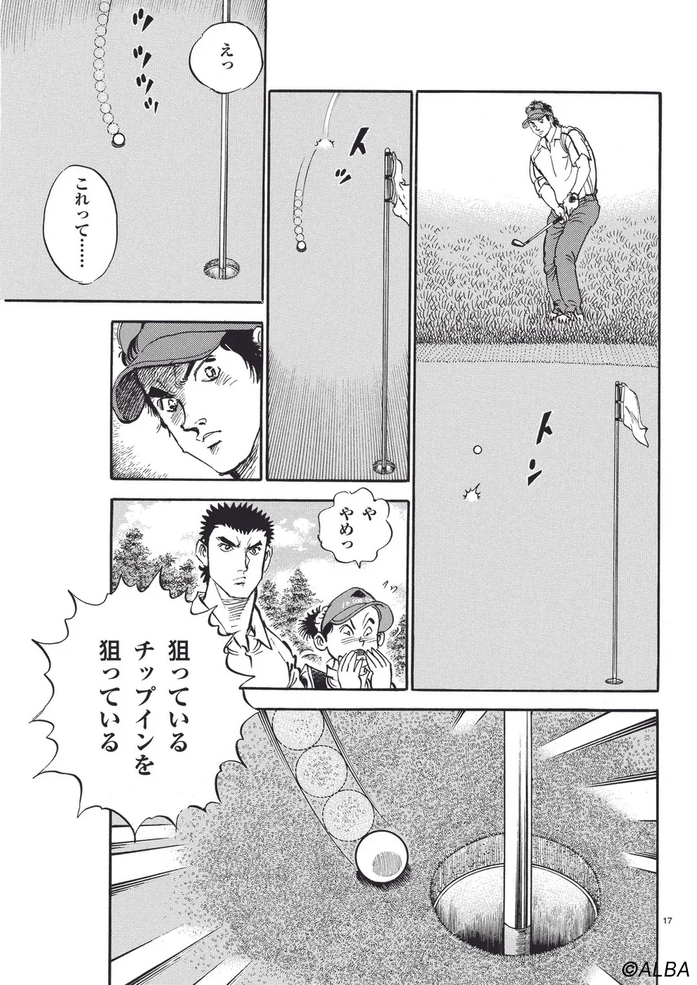 【第44巻あらすじ】日本オープン三日目。完全にマッチプレーの様相を呈してきた一丸と速水のライバル対決。お互いが持っている技を惜しみなく出し合い、無謀ともいえるクラブ選択や強気のパッティングの応酬など、一進一退の攻防を繰り広げる。