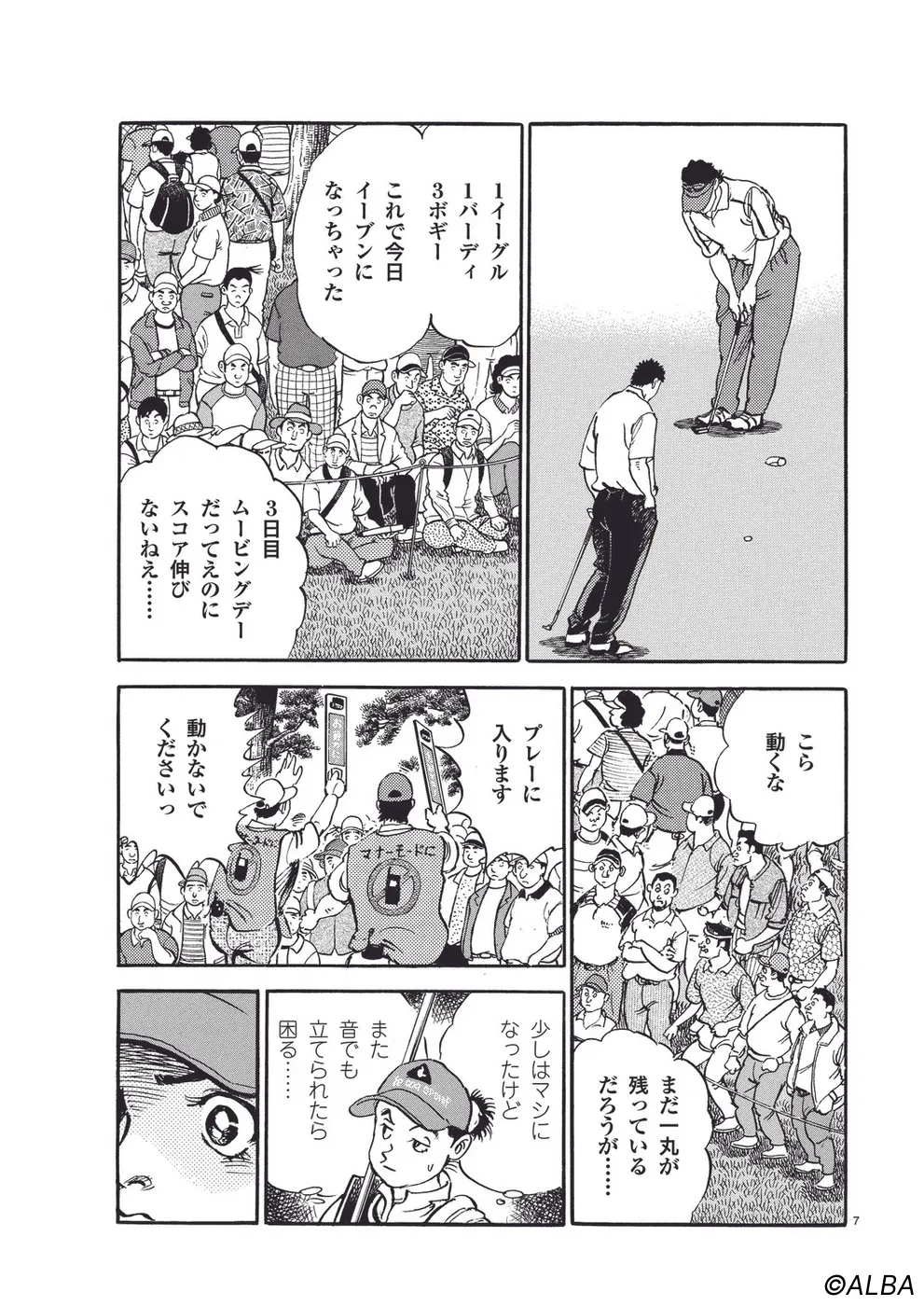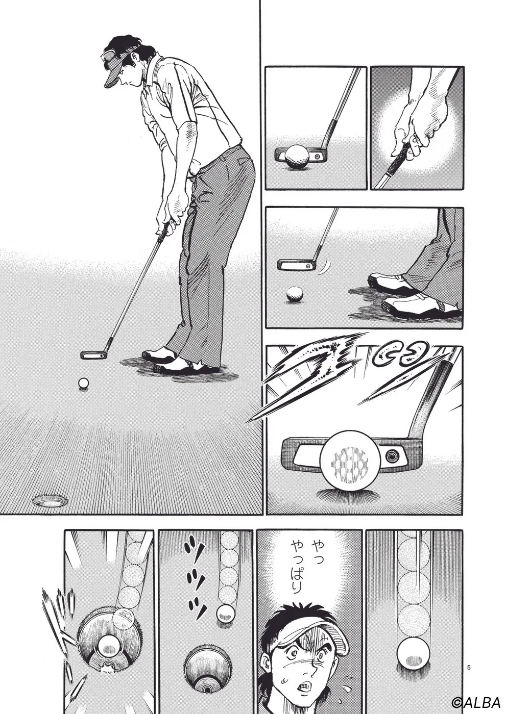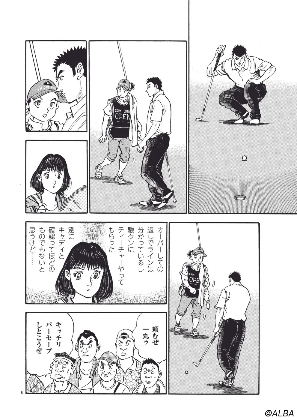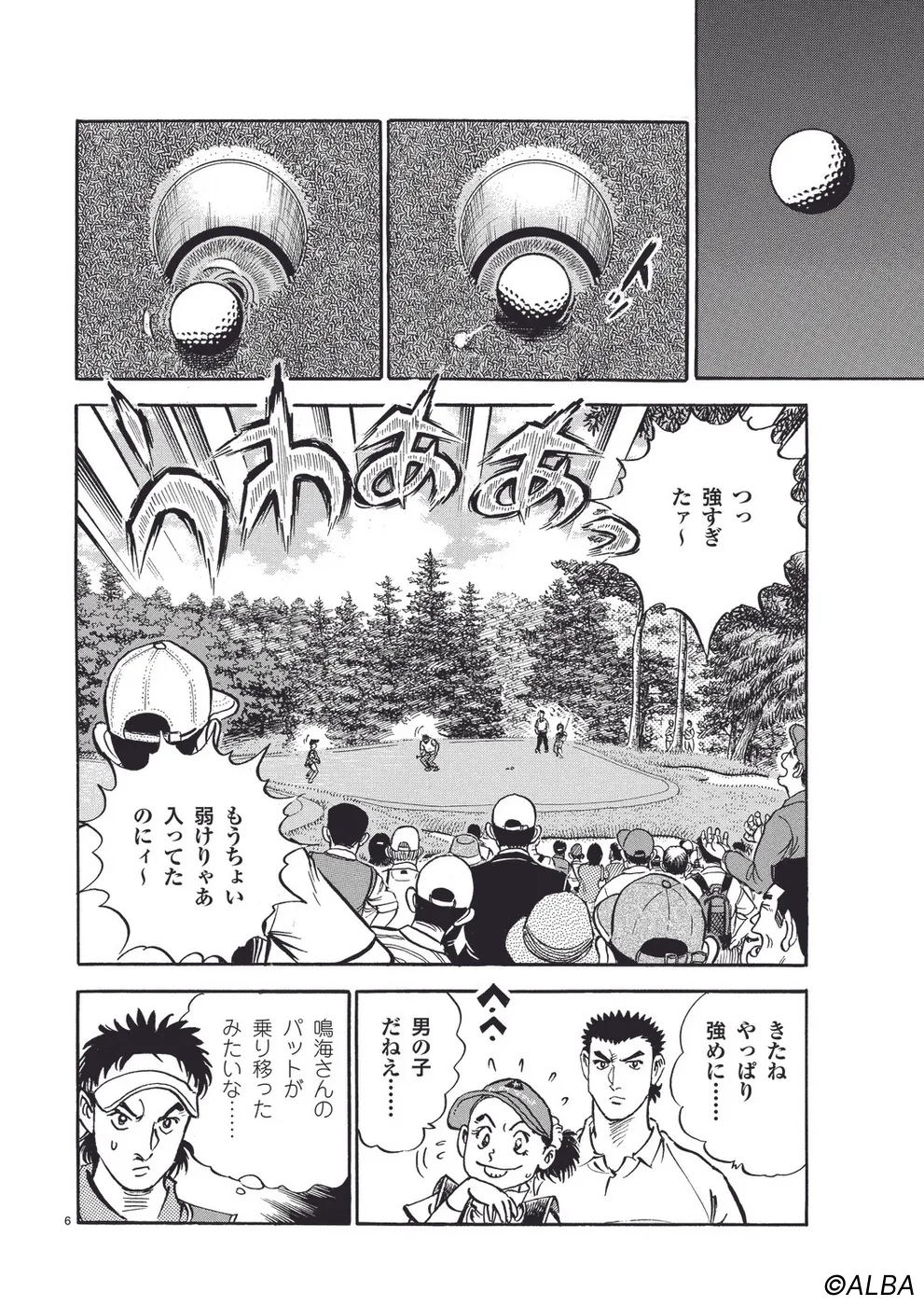 【第44巻あらすじ】日本オープン三日目。完全にマッチプレーの様相を呈してきた一丸と速水のライバル対決。お互いが持っている技を惜しみなく出し合い、無謀ともいえるクラブ選択や強気のパッティングの応酬など、一進一退の攻防を繰り広げる。