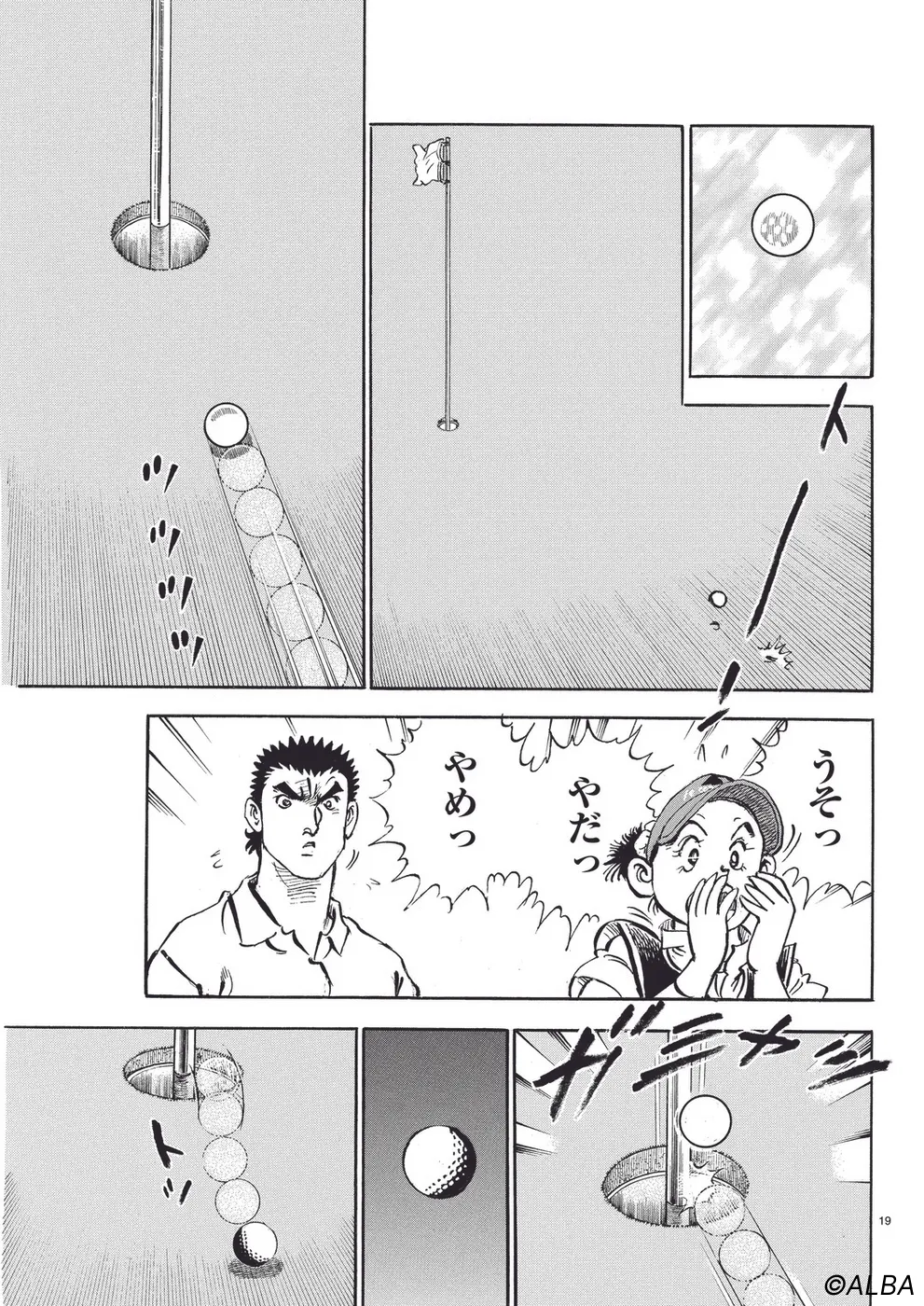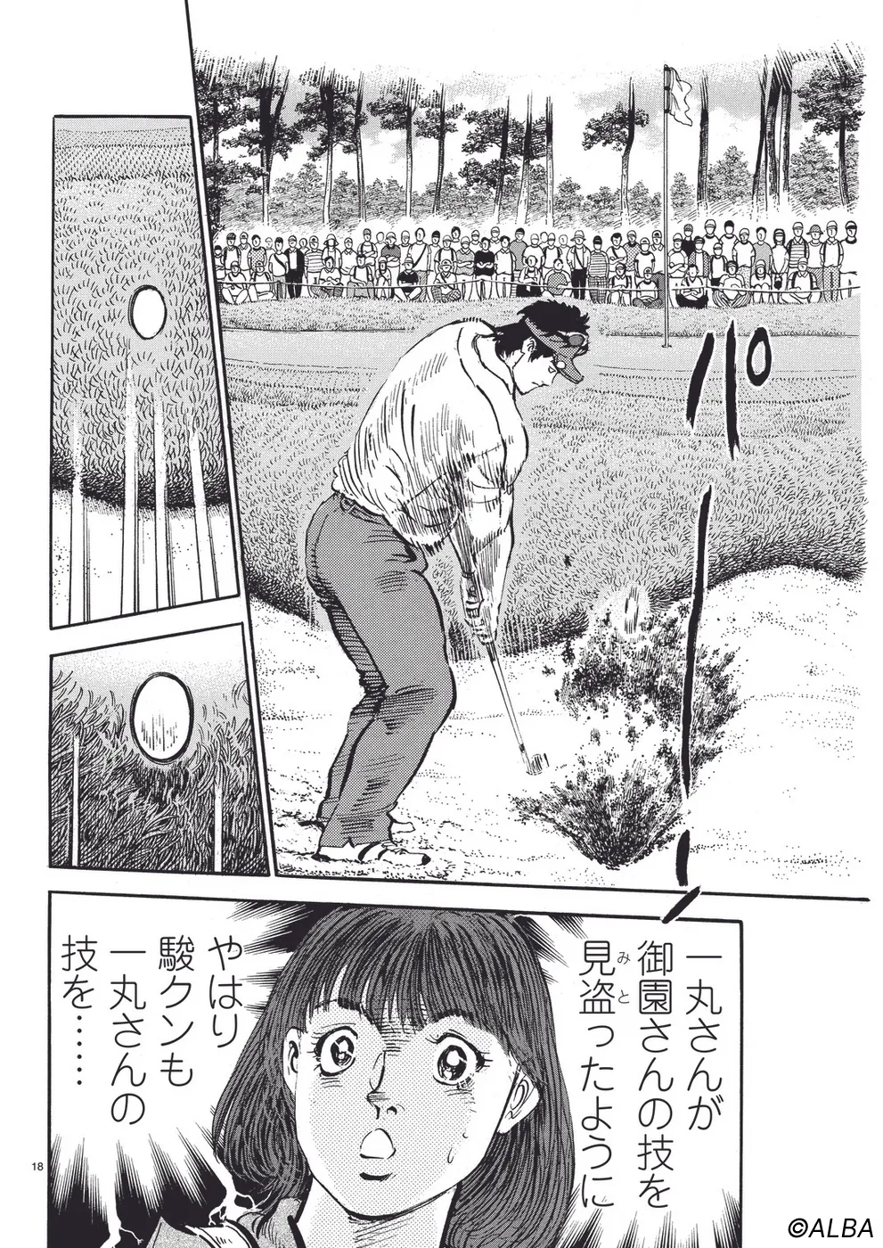 【第44巻あらすじ】日本オープン三日目。完全にマッチプレーの様相を呈してきた一丸と速水のライバル対決。お互いが持っている技を惜しみなく出し合い、無謀ともいえるクラブ選択や強気のパッティングの応酬など、一進一退の攻防を繰り広げる。