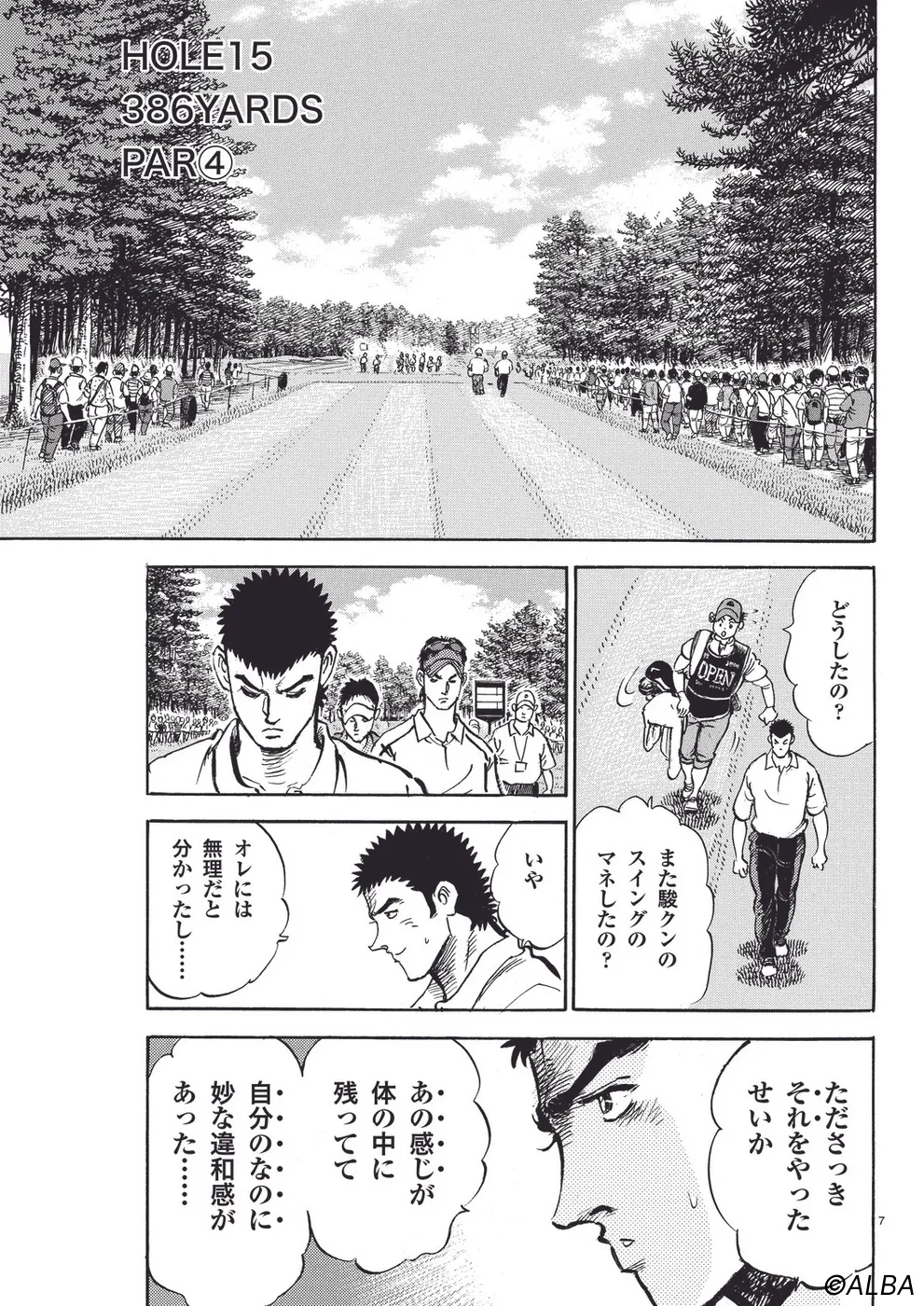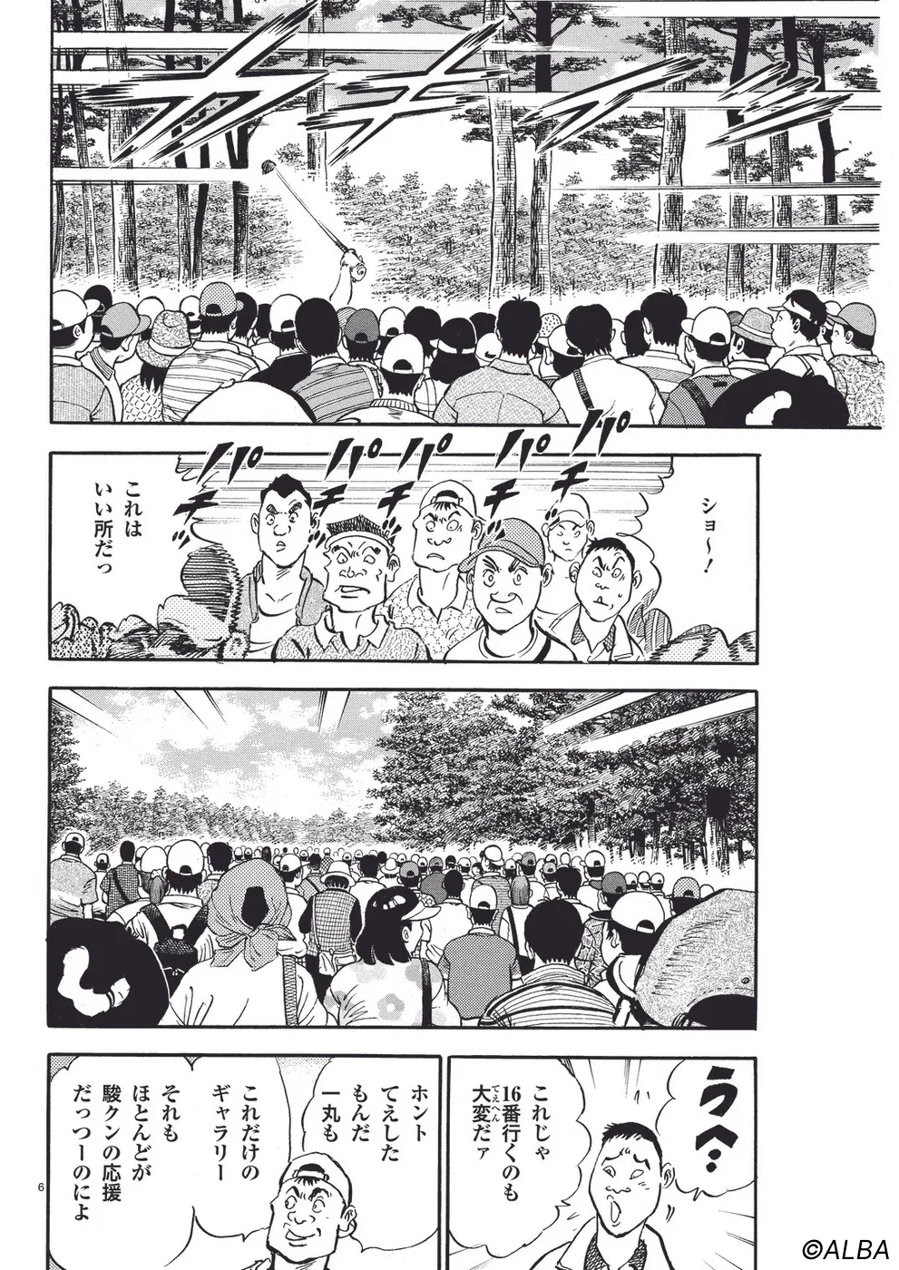 【第44巻あらすじ】日本オープン三日目。完全にマッチプレーの様相を呈してきた一丸と速水のライバル対決。お互いが持っている技を惜しみなく出し合い、無謀ともいえるクラブ選択や強気のパッティングの応酬など、一進一退の攻防を繰り広げる。