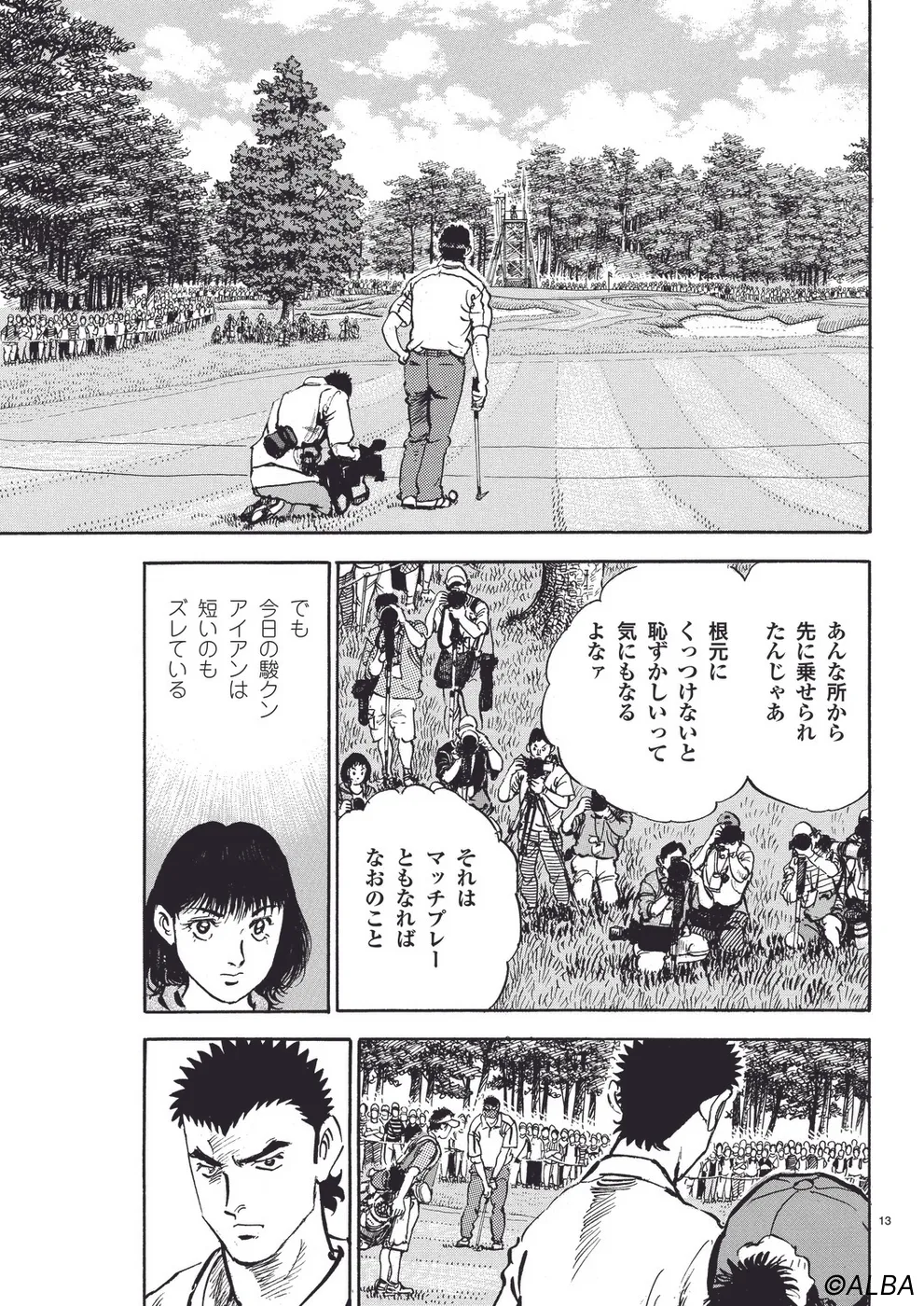 【第44巻あらすじ】日本オープン三日目。完全にマッチプレーの様相を呈してきた一丸と速水のライバル対決。お互いが持っている技を惜しみなく出し合い、無謀ともいえるクラブ選択や強気のパッティングの応酬など、一進一退の攻防を繰り広げる。