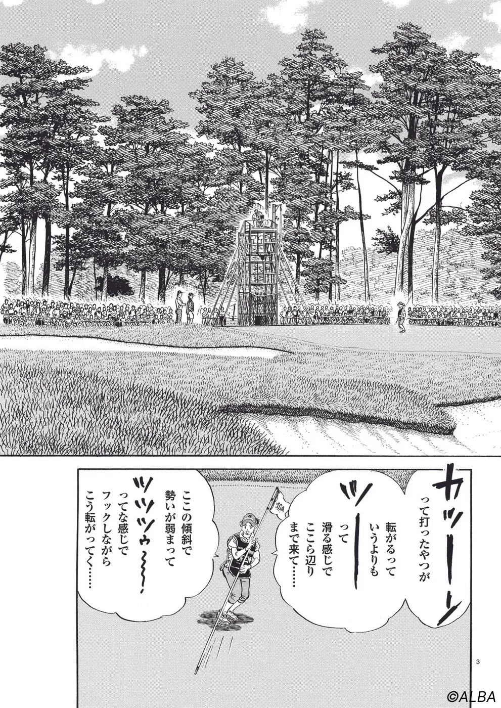 【第45巻あらすじ】残り3ホールを残すのみとなった日本オープン3日目。速水駿という新たなライバルのゴルフに圧倒されながらも、これまで見盗った技術と新たに習得したテクニックを駆使し、必死に食い下がる一丸。優勝を狙える位置で最終日に向かうのはどっちだ!?