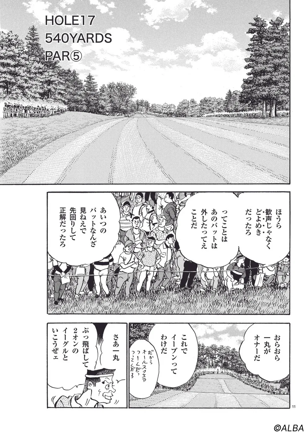 【第45巻あらすじ】残り3ホールを残すのみとなった日本オープン3日目。速水駿という新たなライバルのゴルフに圧倒されながらも、これまで見盗った技術と新たに習得したテクニックを駆使し、必死に食い下がる一丸。優勝を狙える位置で最終日に向かうのはどっちだ!?