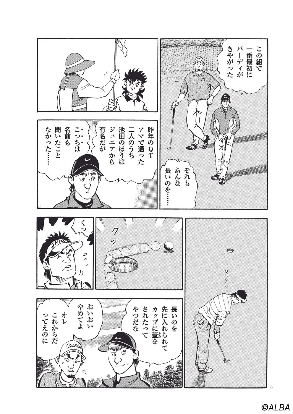 【第49巻あらすじ】プロとしての道を歩み始めた一平、初戦となるチャレンジトーナメントに挑むことに。グリーンキーパーとしての知識に加え、大茨城GCで鍛えた小技を武器に飛ばし屋たちと対等に渡り合う。大荒れの天候も重なり、大波乱となった試合を制するのは一体!?