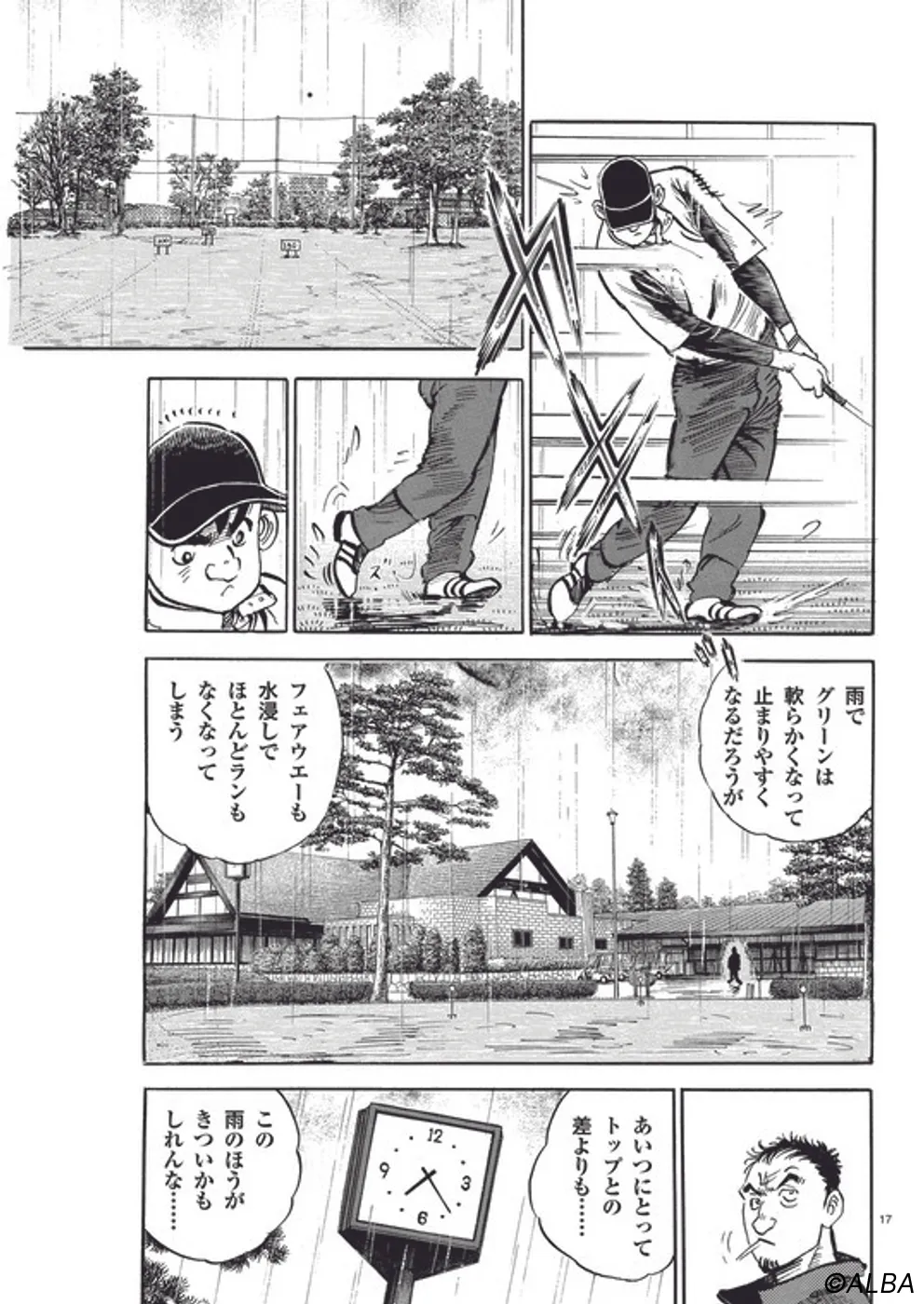 【第49巻あらすじ】プロとしての道を歩み始めた一平、初戦となるチャレンジトーナメントに挑むことに。グリーンキーパーとしての知識に加え、大茨城GCで鍛えた小技を武器に飛ばし屋たちと対等に渡り合う。大荒れの天候も重なり、大波乱となった試合を制するのは一体!?