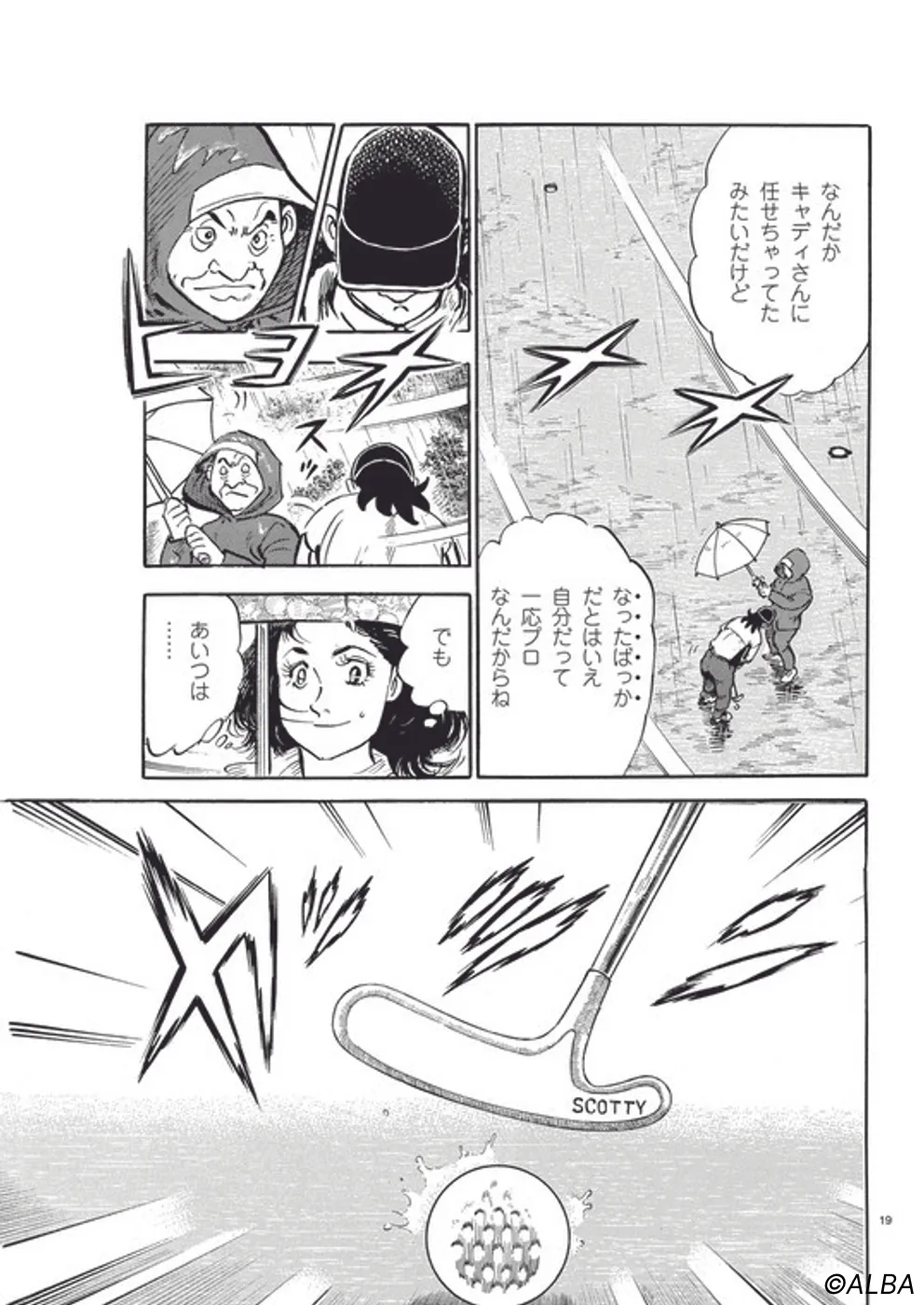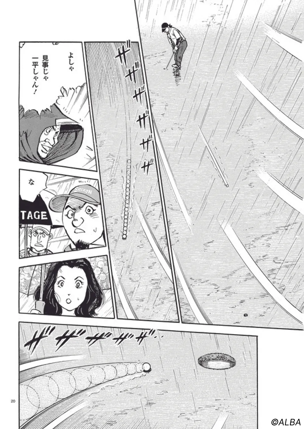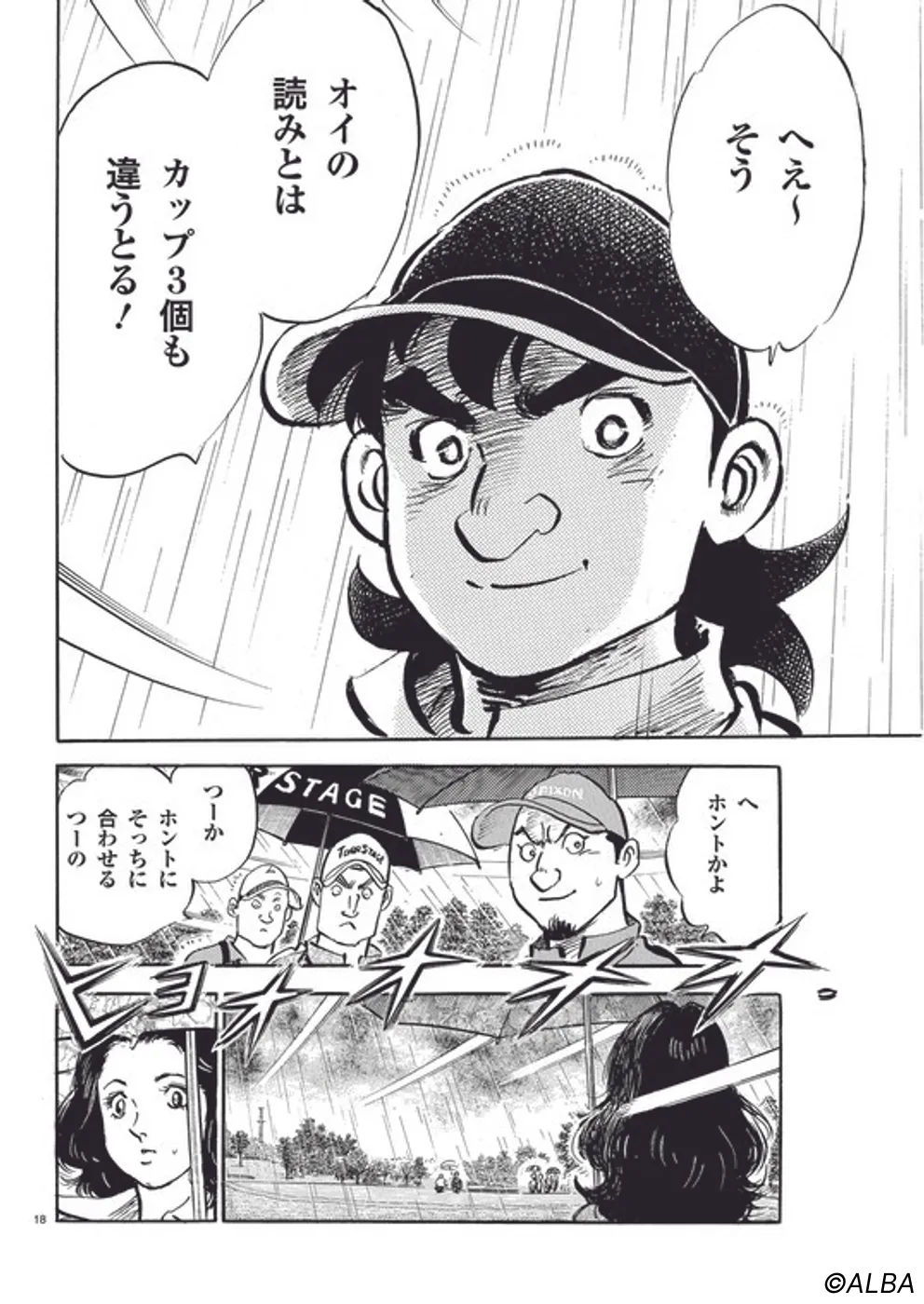 【第49巻あらすじ】プロとしての道を歩み始めた一平、初戦となるチャレンジトーナメントに挑むことに。グリーンキーパーとしての知識に加え、大茨城GCで鍛えた小技を武器に飛ばし屋たちと対等に渡り合う。大荒れの天候も重なり、大波乱となった試合を制するのは一体!?