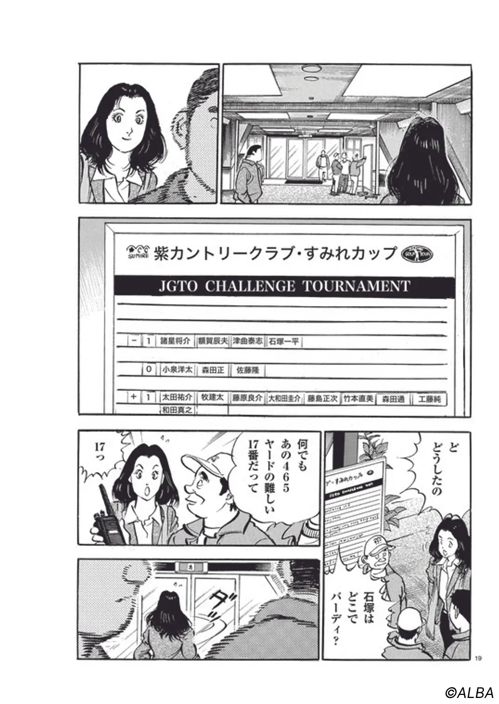【第49巻あらすじ】プロとしての道を歩み始めた一平、初戦となるチャレンジトーナメントに挑むことに。グリーンキーパーとしての知識に加え、大茨城GCで鍛えた小技を武器に飛ばし屋たちと対等に渡り合う。大荒れの天候も重なり、大波乱となった試合を制するのは一体!?