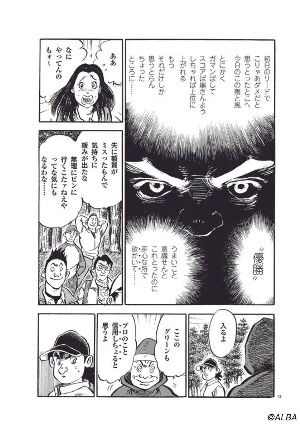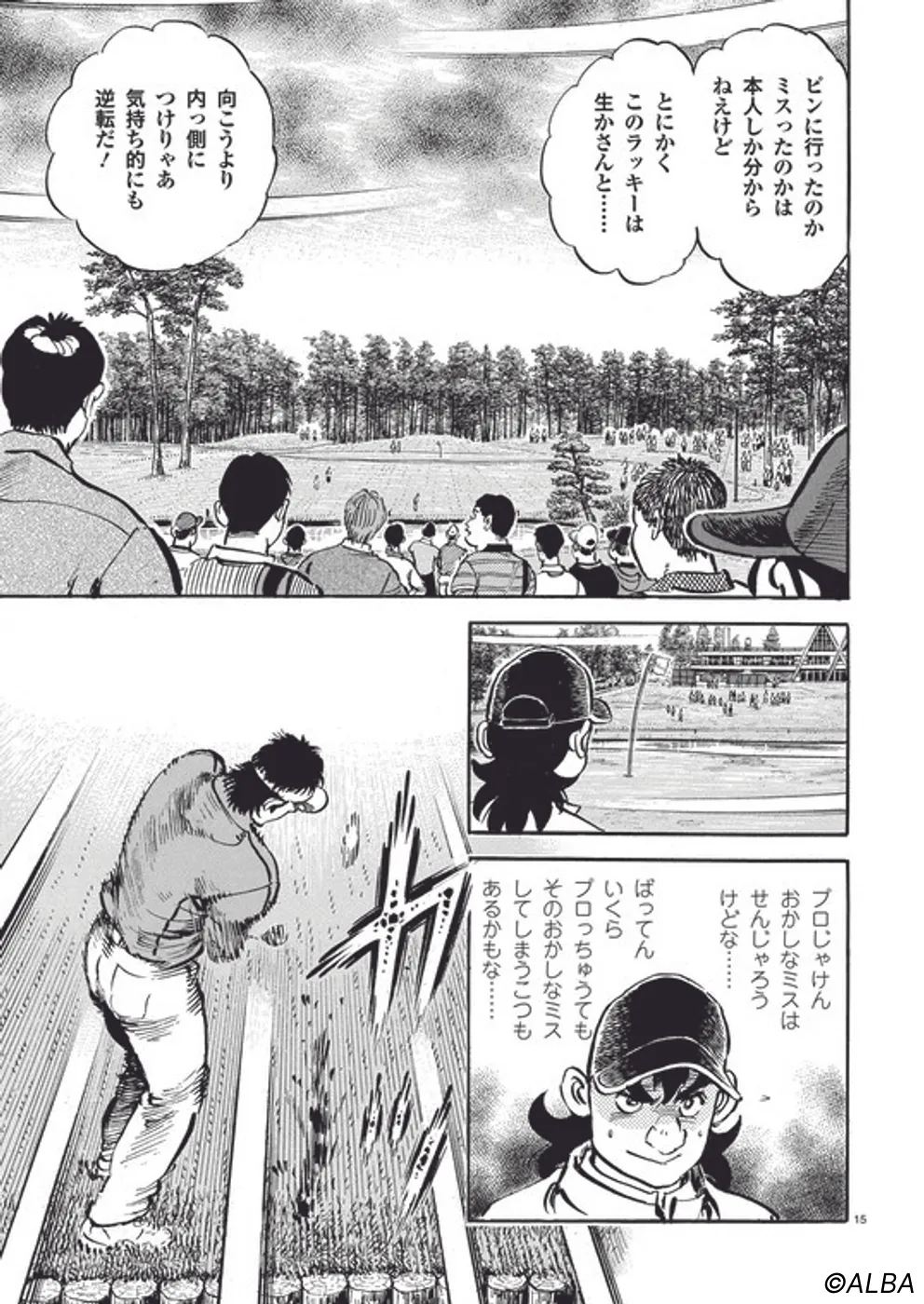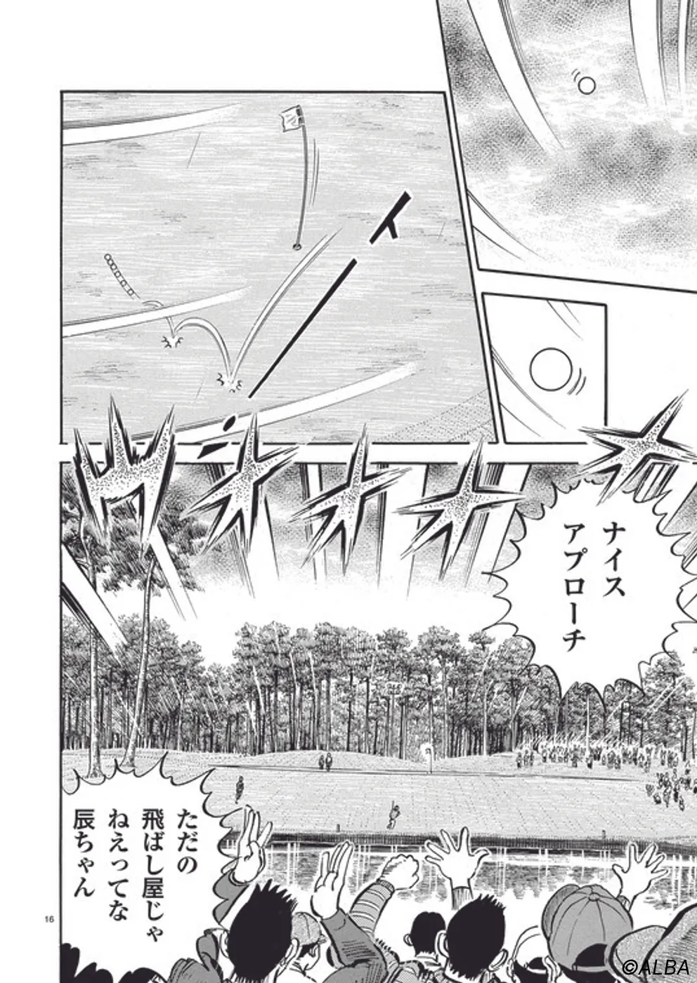 【第49巻あらすじ】プロとしての道を歩み始めた一平、初戦となるチャレンジトーナメントに挑むことに。グリーンキーパーとしての知識に加え、大茨城GCで鍛えた小技を武器に飛ばし屋たちと対等に渡り合う。大荒れの天候も重なり、大波乱となった試合を制するのは一体!?