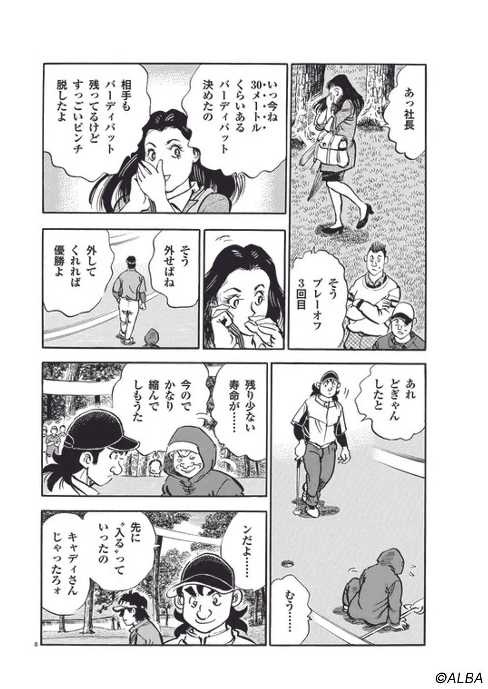 【第49巻あらすじ】プロとしての道を歩み始めた一平、初戦となるチャレンジトーナメントに挑むことに。グリーンキーパーとしての知識に加え、大茨城GCで鍛えた小技を武器に飛ばし屋たちと対等に渡り合う。大荒れの天候も重なり、大波乱となった試合を制するのは一体!?