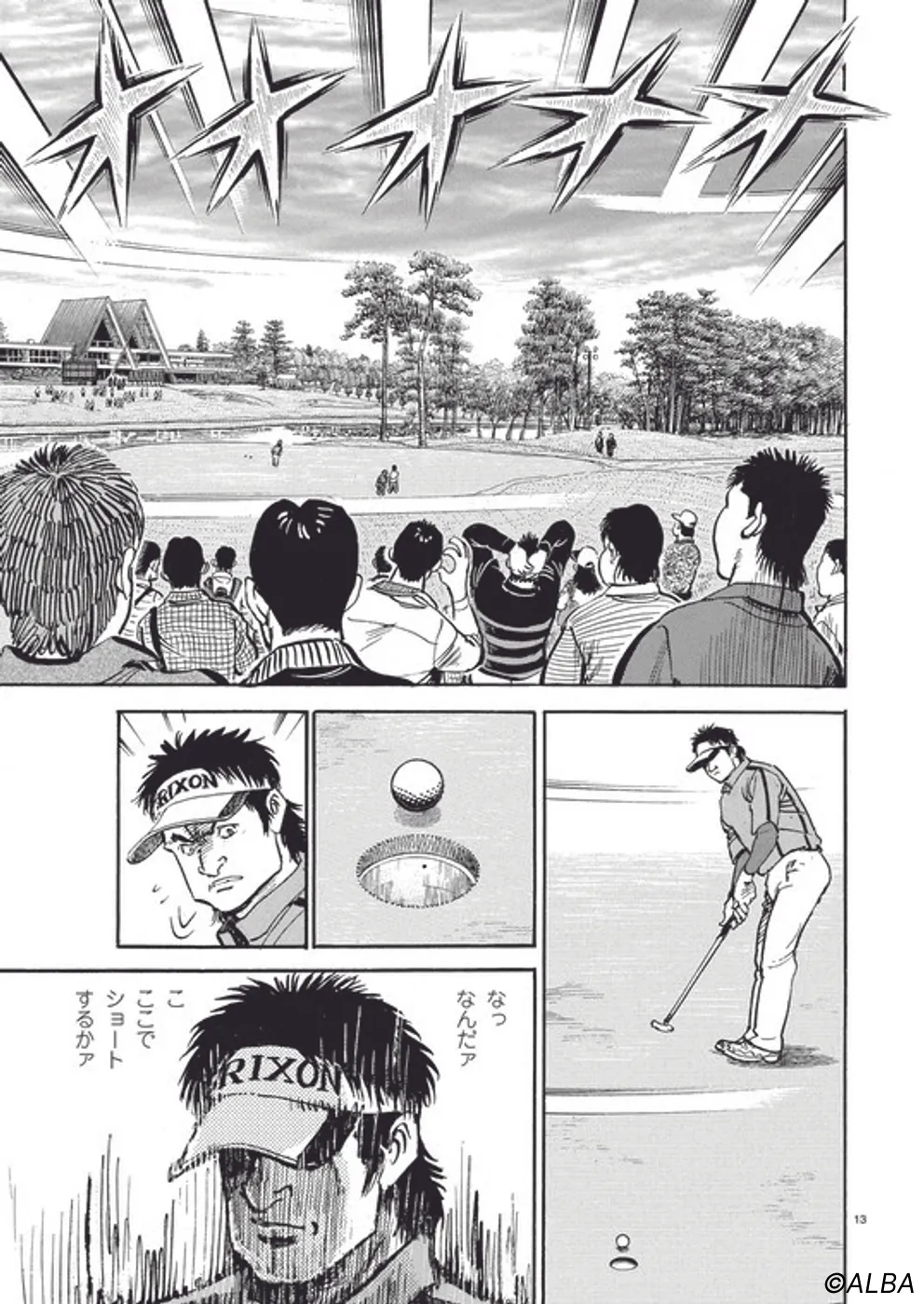 【第49巻あらすじ】プロとしての道を歩み始めた一平、初戦となるチャレンジトーナメントに挑むことに。グリーンキーパーとしての知識に加え、大茨城GCで鍛えた小技を武器に飛ばし屋たちと対等に渡り合う。大荒れの天候も重なり、大波乱となった試合を制するのは一体!?