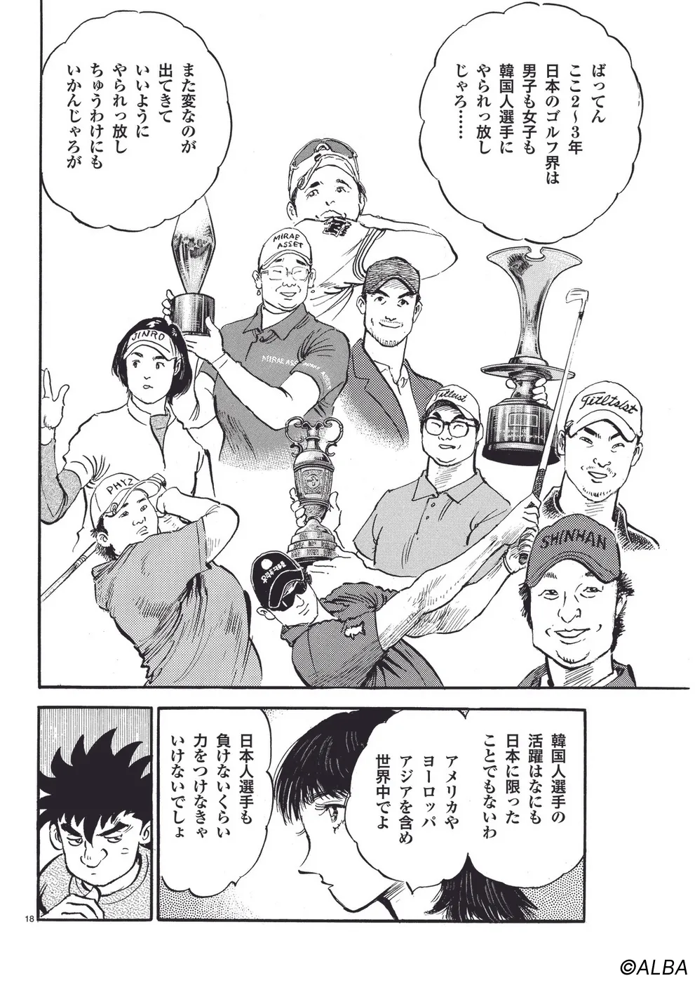 【第52巻あらすじ】一平とともに「ミズオオープン」に出場することになった一丸。釧路での特訓の成果から、予選は無難に突破する。しかし、決勝ラウンド一日目は、韓国の至宝と呼ばれる人気プロ、オム・ドゥイルと同組に。新たなライバル出現にどんなゴルフを展開する!?