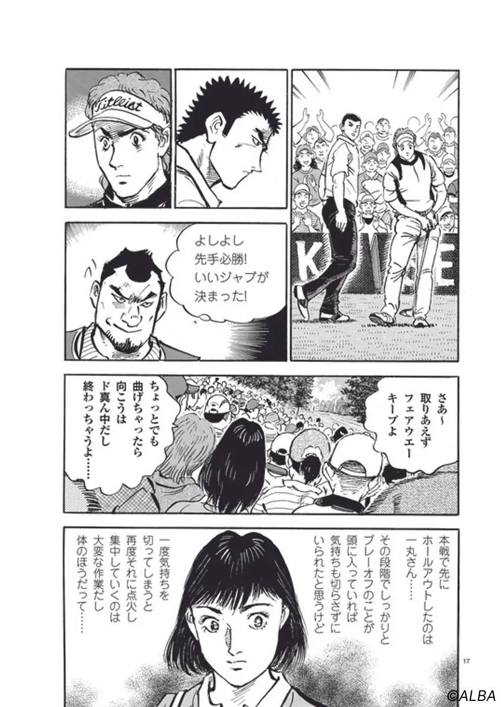 【第56巻あらすじ】クラブハウスリーダーとしてホールアウトした一丸は、一平の隠れたサポートなどもありドゥイルとのプレーオフに突入する。桂や一平、御薗に加え、一丸の父親も見守る中行われた一騎打ちは予想通りの大接戦に。ついに、ミズオオープンが決着する。