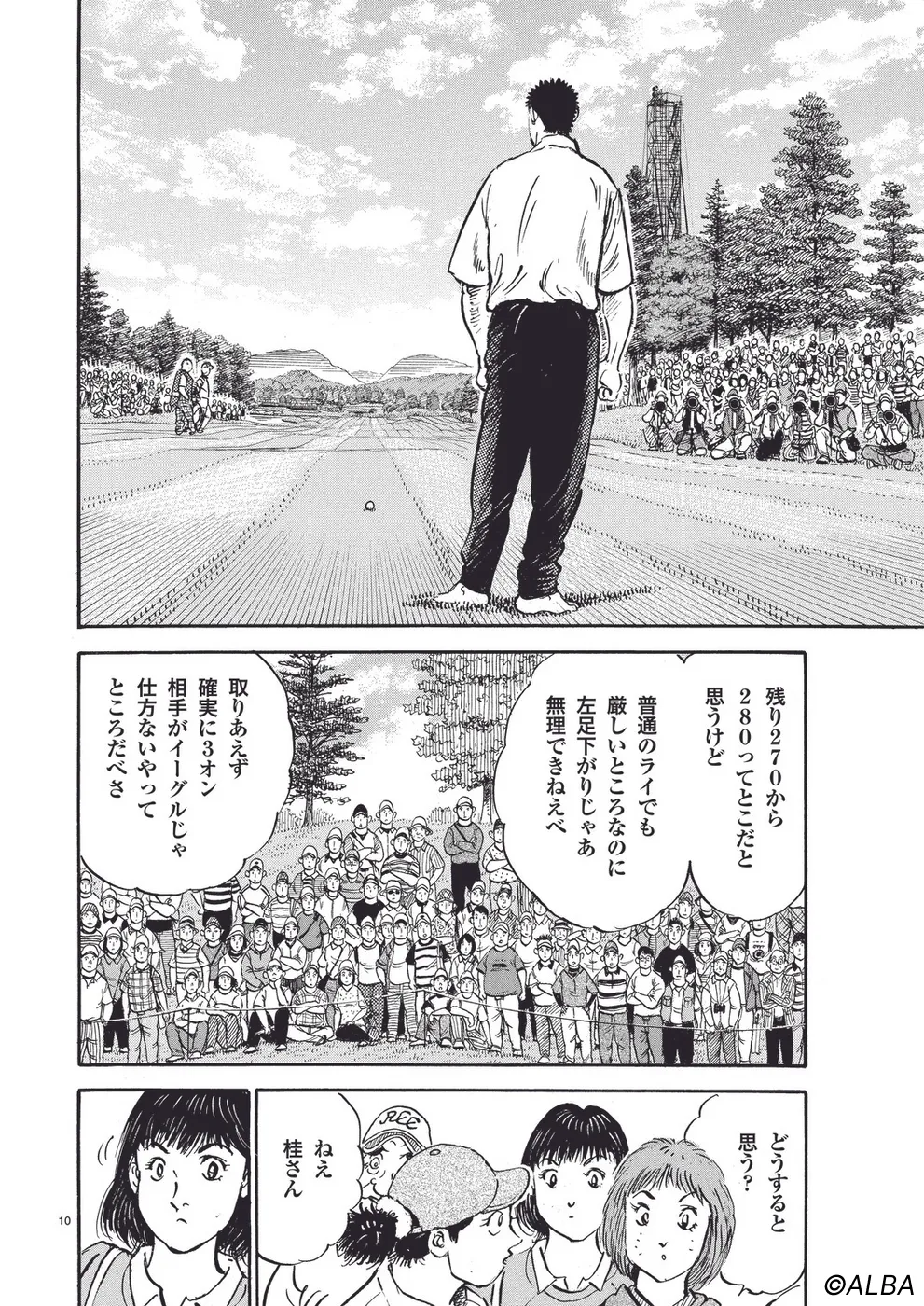 【第56巻あらすじ】クラブハウスリーダーとしてホールアウトした一丸は、一平の隠れたサポートなどもありドゥイルとのプレーオフに突入する。桂や一平、御薗に加え、一丸の父親も見守る中行われた一騎打ちは予想通りの大接戦に。ついに、ミズオオープンが決着する。