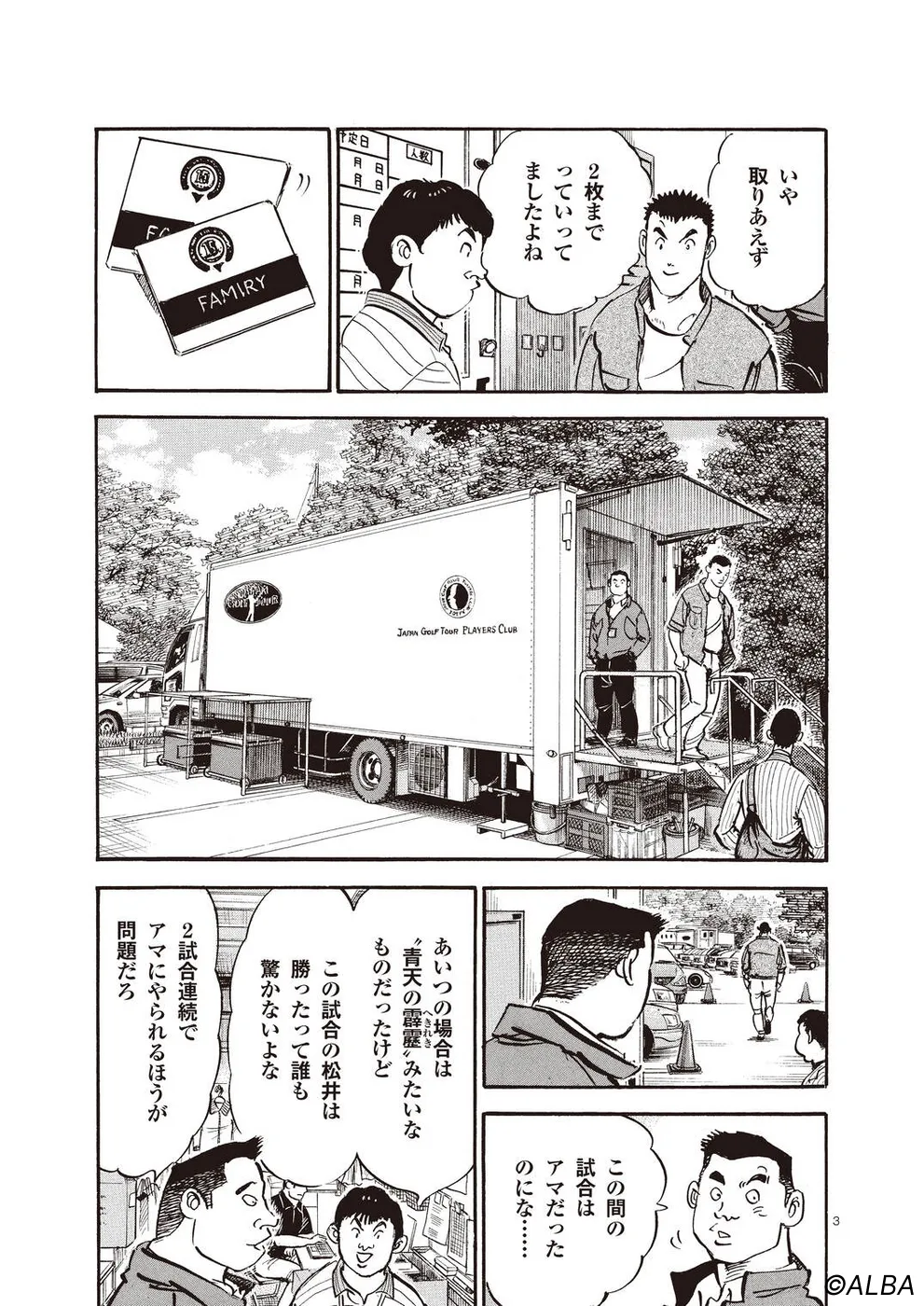 【第59巻あらすじ】プロ宣言した一丸の前に現れたジャンボ尾関。そして突然「引退」をかけたマッチプレー勝負を持ちかけられる。ジャンボの真意が掴めぬまま勝負は進み、ダウンを喫したまま終盤戦に差し掛かっていく。果たして引退を回避できるのか!?