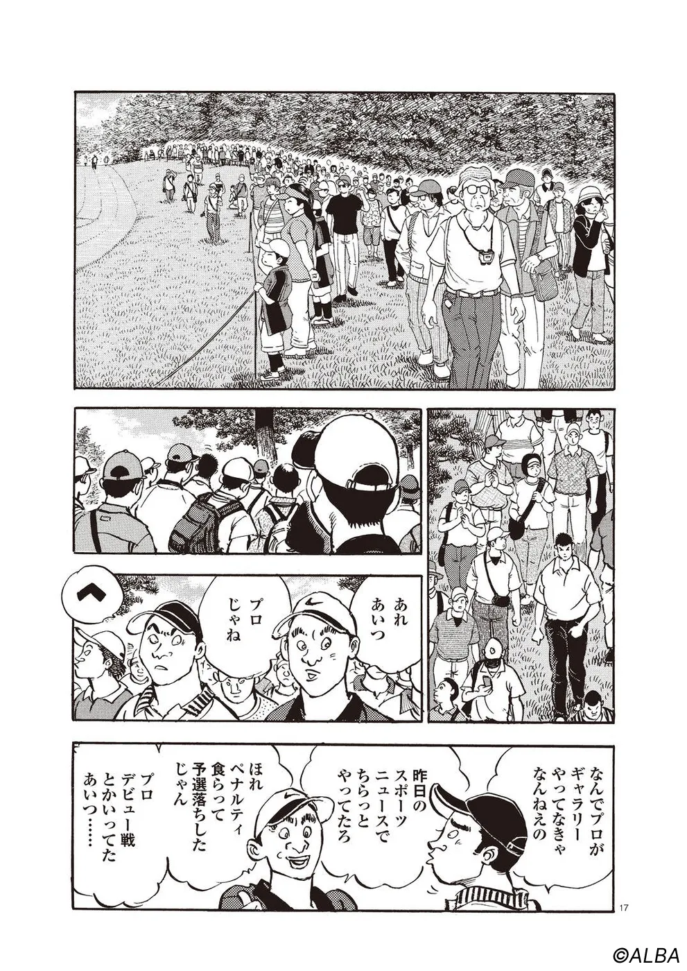 【第60巻あらすじ】初日に8オーバーの大たたきを喫し、無念の予選落ちとなってしまったプロデビュー戦。しかし、新たなライバル、松井秀樹の登場が一丸の心を躍らせる。迎えたプロ2戦目。北海道に乗り込んだ一丸を待っていたのは、一平とそのキャディを勤める桂の姿だった。