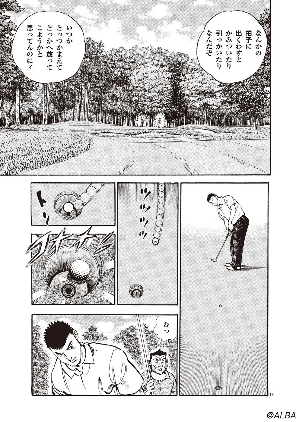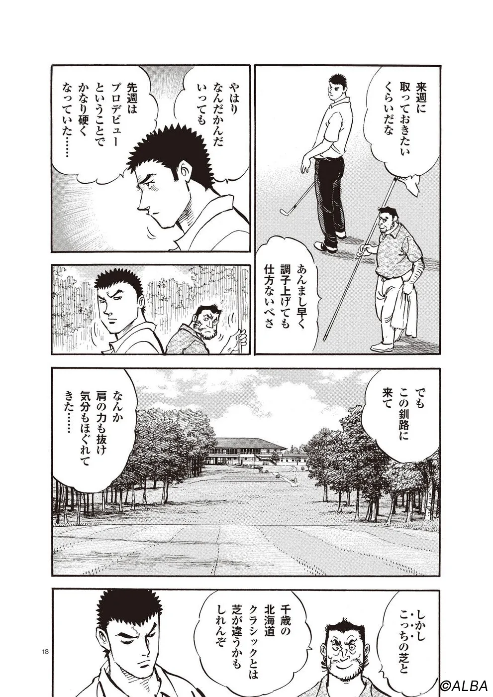 【第60巻あらすじ】初日に8オーバーの大たたきを喫し、無念の予選落ちとなってしまったプロデビュー戦。しかし、新たなライバル、松井秀樹の登場が一丸の心を躍らせる。迎えたプロ2戦目。北海道に乗り込んだ一丸を待っていたのは、一平とそのキャディを勤める桂の姿だった。