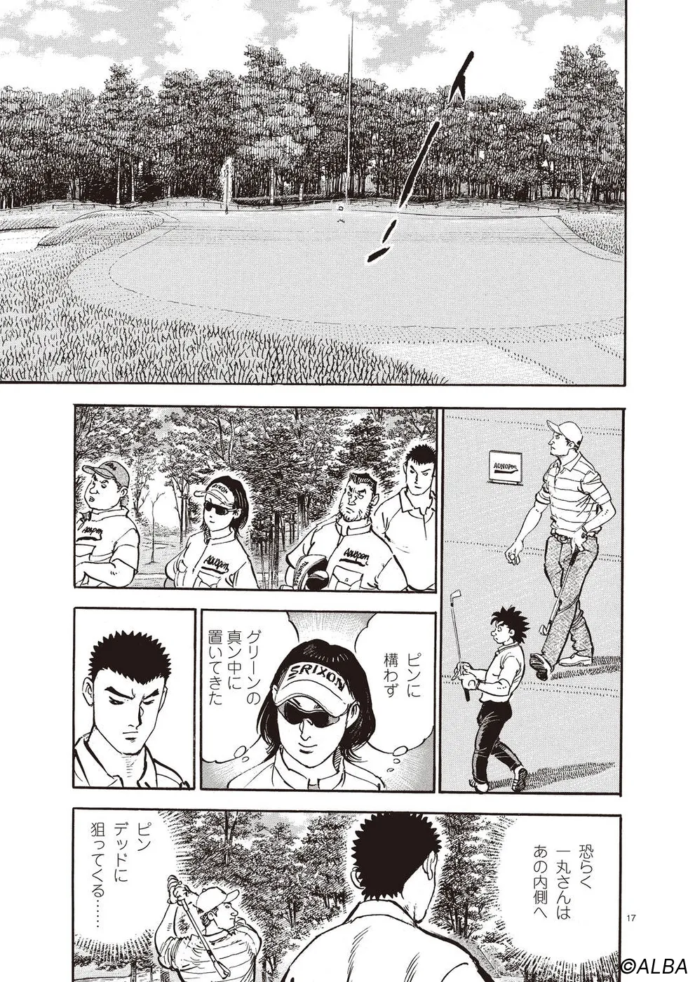 【第61巻あらすじ】AONオープン初日。桂をキャディに従えた一平とまさかの同組となってしまった一丸。序盤、桂の存在に動揺し大たたきを喫した一丸だが、決勝ラウンド進出目指し立ち直っていく。一丸、一平、桂、三者三様の思惑が絡むなか、予選ラウンドが進んでいく。