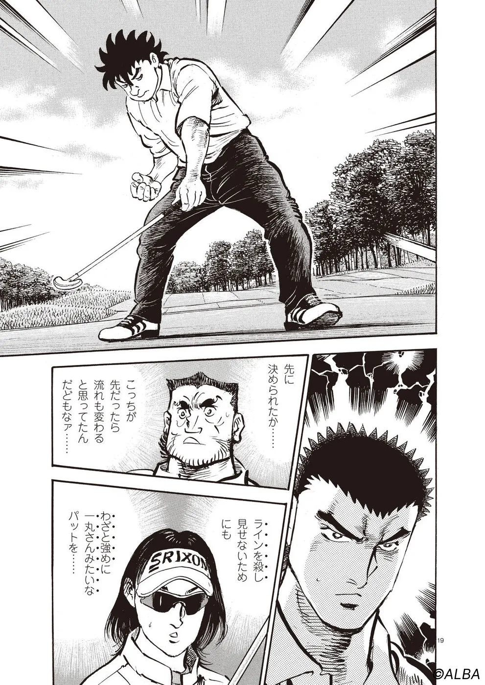 【第61巻あらすじ】AONオープン初日。桂をキャディに従えた一平とまさかの同組となってしまった一丸。序盤、桂の存在に動揺し大たたきを喫した一丸だが、決勝ラウンド進出目指し立ち直っていく。一丸、一平、桂、三者三様の思惑が絡むなか、予選ラウンドが進んでいく。