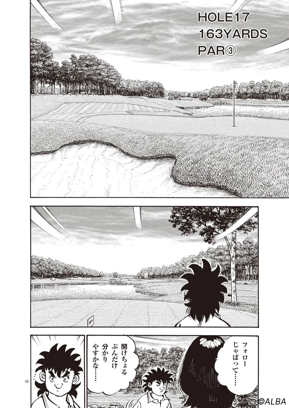 【第61巻あらすじ】AONオープン初日。桂をキャディに従えた一平とまさかの同組となってしまった一丸。序盤、桂の存在に動揺し大たたきを喫した一丸だが、決勝ラウンド進出目指し立ち直っていく。一丸、一平、桂、三者三様の思惑が絡むなか、予選ラウンドが進んでいく。