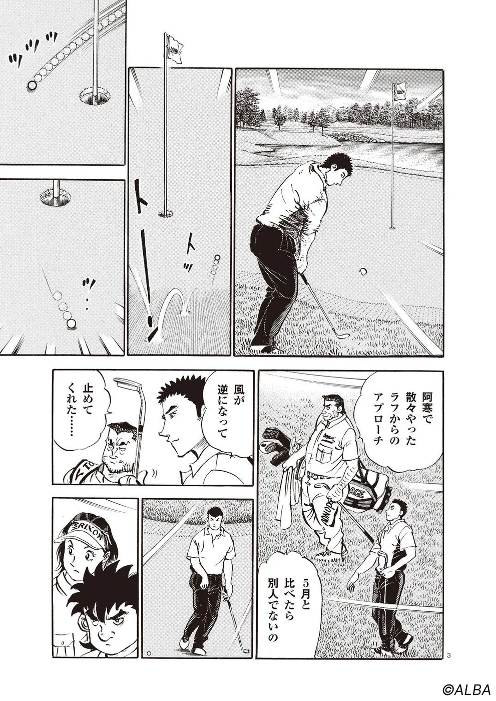 【第61巻あらすじ】AONオープン初日。桂をキャディに従えた一平とまさかの同組となってしまった一丸。序盤、桂の存在に動揺し大たたきを喫した一丸だが、決勝ラウンド進出目指し立ち直っていく。一丸、一平、桂、三者三様の思惑が絡むなか、予選ラウンドが進んでいく。