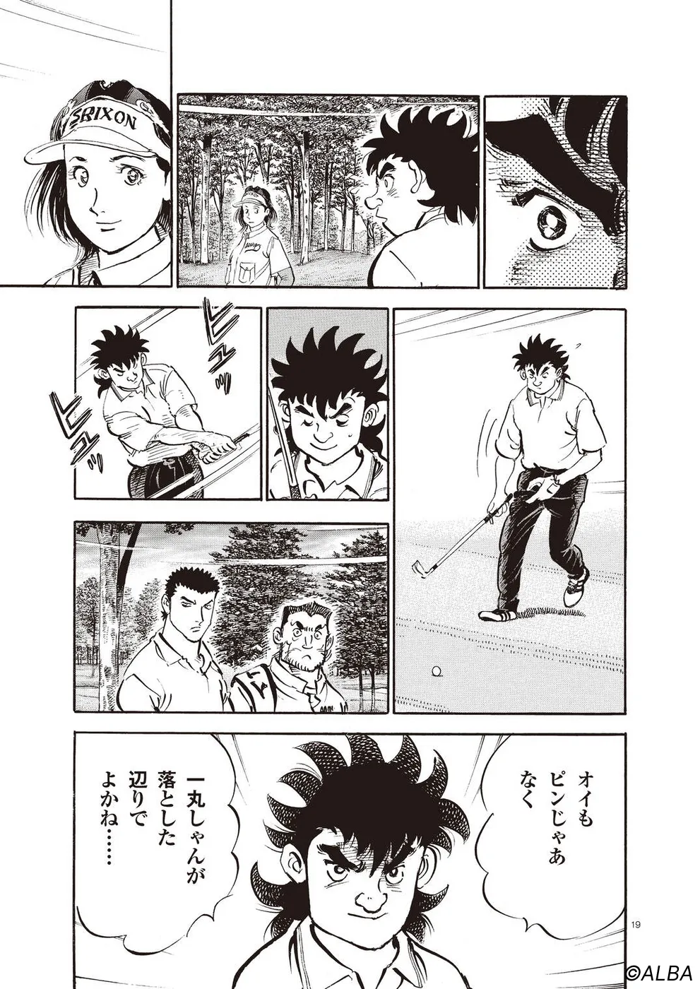 【第61巻あらすじ】AONオープン初日。桂をキャディに従えた一平とまさかの同組となってしまった一丸。序盤、桂の存在に動揺し大たたきを喫した一丸だが、決勝ラウンド進出目指し立ち直っていく。一丸、一平、桂、三者三様の思惑が絡むなか、予選ラウンドが進んでいく。
