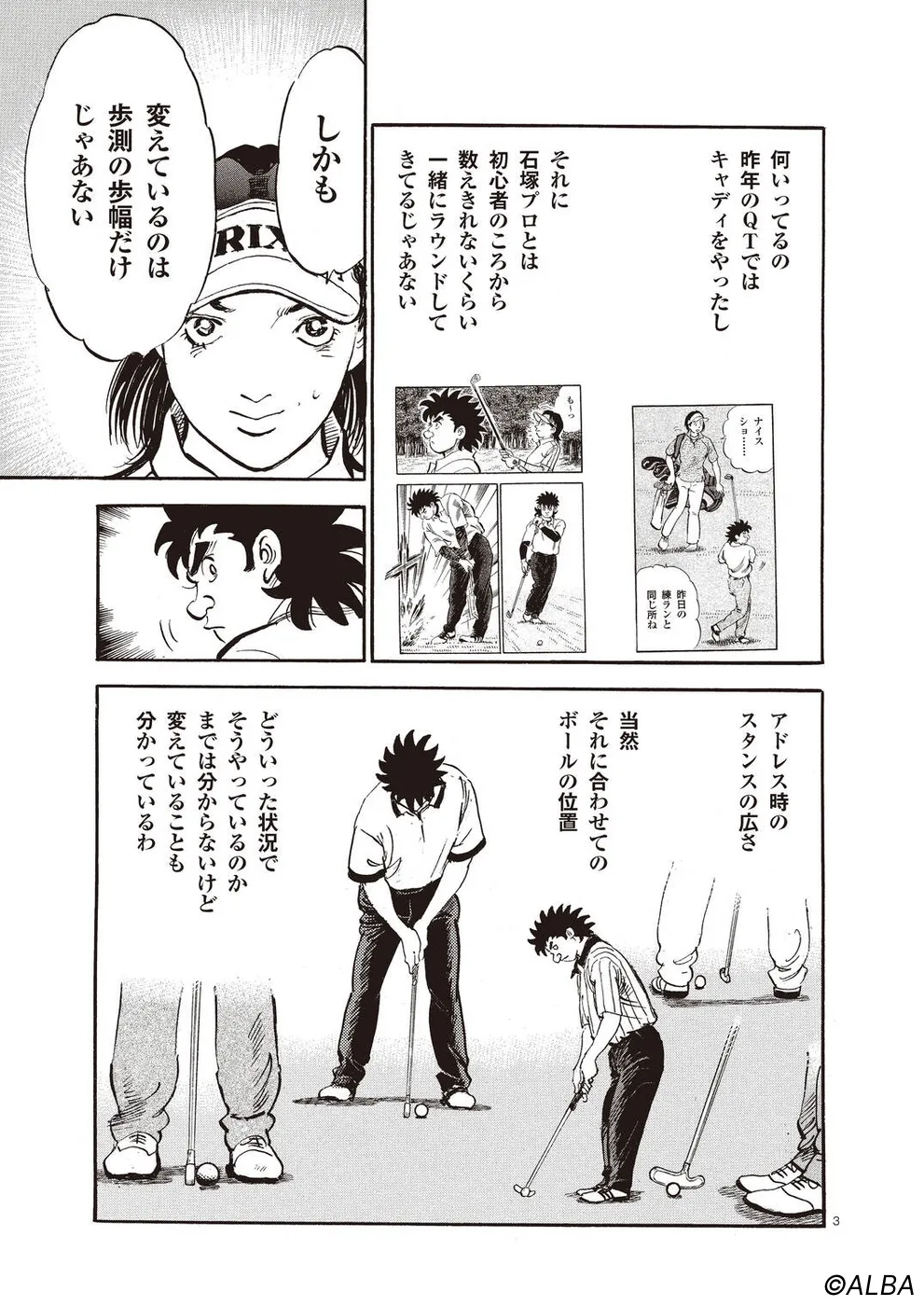 【第61巻あらすじ】AONオープン初日。桂をキャディに従えた一平とまさかの同組となってしまった一丸。序盤、桂の存在に動揺し大たたきを喫した一丸だが、決勝ラウンド進出目指し立ち直っていく。一丸、一平、桂、三者三様の思惑が絡むなか、予選ラウンドが進んでいく。