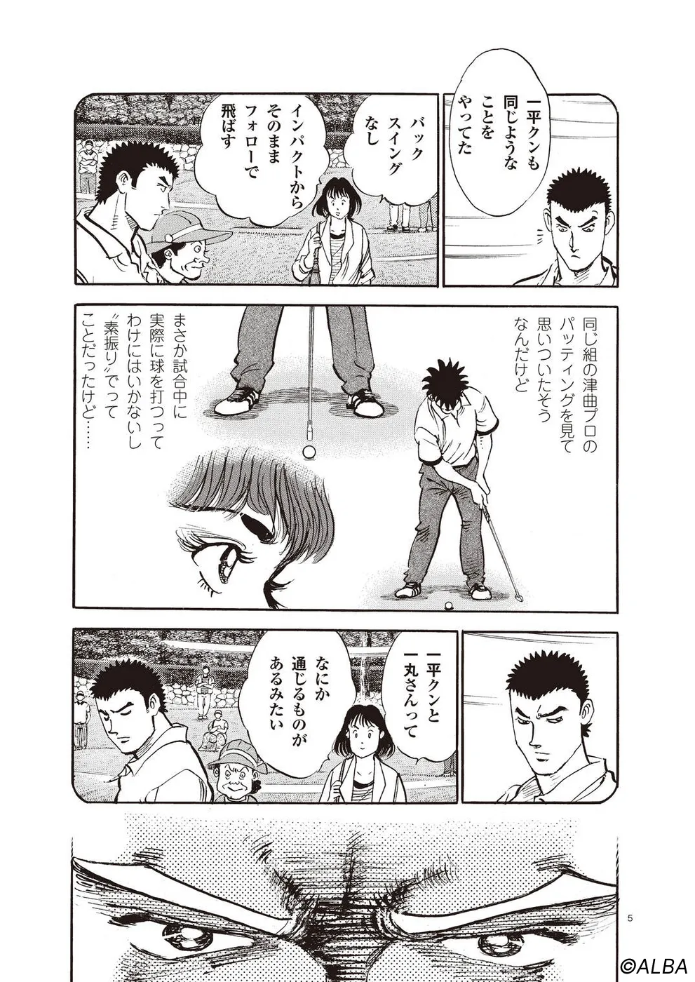 【第61巻あらすじ】AONオープン初日。桂をキャディに従えた一平とまさかの同組となってしまった一丸。序盤、桂の存在に動揺し大たたきを喫した一丸だが、決勝ラウンド進出目指し立ち直っていく。一丸、一平、桂、三者三様の思惑が絡むなか、予選ラウンドが進んでいく。