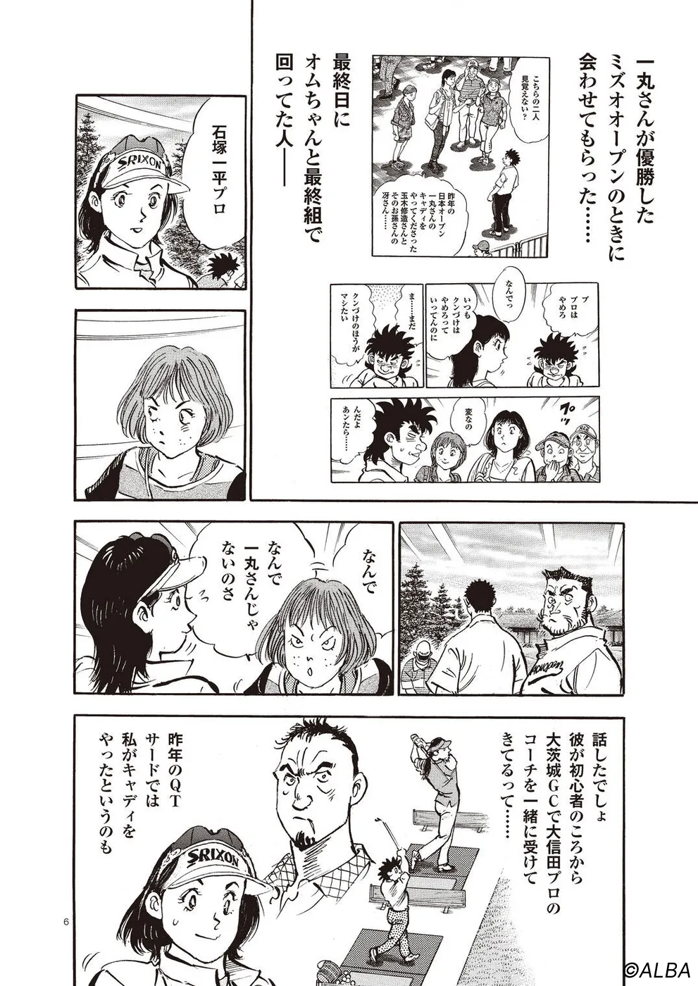 【第61巻あらすじ】AONオープン初日。桂をキャディに従えた一平とまさかの同組となってしまった一丸。序盤、桂の存在に動揺し大たたきを喫した一丸だが、決勝ラウンド進出目指し立ち直っていく。一丸、一平、桂、三者三様の思惑が絡むなか、予選ラウンドが進んでいく。