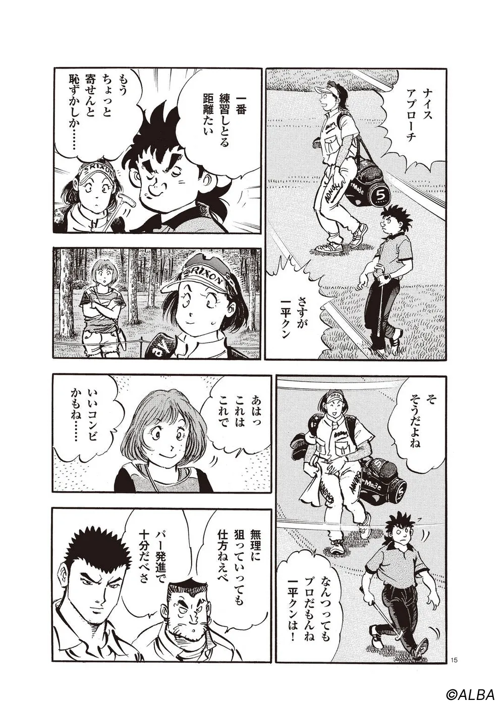 【第61巻あらすじ】AONオープン初日。桂をキャディに従えた一平とまさかの同組となってしまった一丸。序盤、桂の存在に動揺し大たたきを喫した一丸だが、決勝ラウンド進出目指し立ち直っていく。一丸、一平、桂、三者三様の思惑が絡むなか、予選ラウンドが進んでいく。