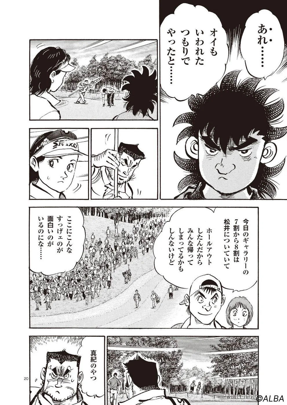 【第62巻あらすじ】AONオープン二日目。一平の仕掛けなどもあり、初日に思うようなスコアを出せなかった一丸だが、人が変わったように猛チャージをかける。そして、スーパーアマとして注目を浴びる松井英樹は、明らかに一丸を意識したプレーをとるようになる。決勝ラウンドはどうなる!?