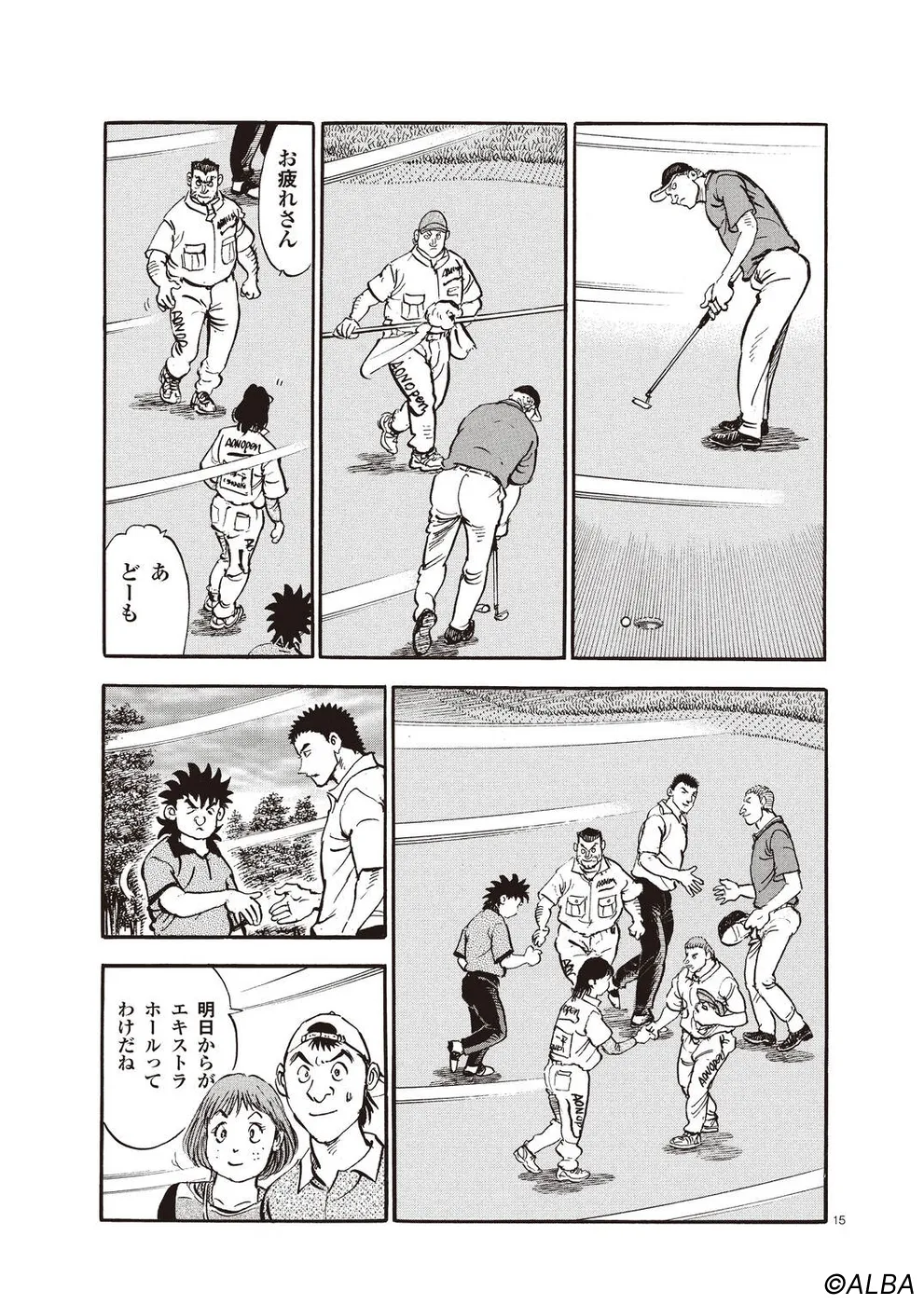 【第62巻あらすじ】AONオープン二日目。一平の仕掛けなどもあり、初日に思うようなスコアを出せなかった一丸だが、人が変わったように猛チャージをかける。そして、スーパーアマとして注目を浴びる松井英樹は、明らかに一丸を意識したプレーをとるようになる。決勝ラウンドはどうなる!?