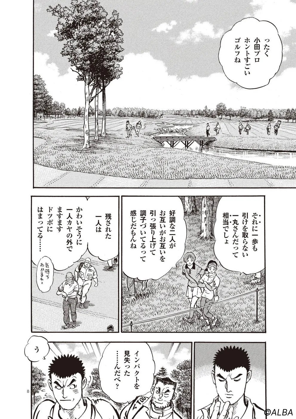 【第62巻あらすじ】AONオープン二日目。一平の仕掛けなどもあり、初日に思うようなスコアを出せなかった一丸だが、人が変わったように猛チャージをかける。そして、スーパーアマとして注目を浴びる松井英樹は、明らかに一丸を意識したプレーをとるようになる。決勝ラウンドはどうなる!?