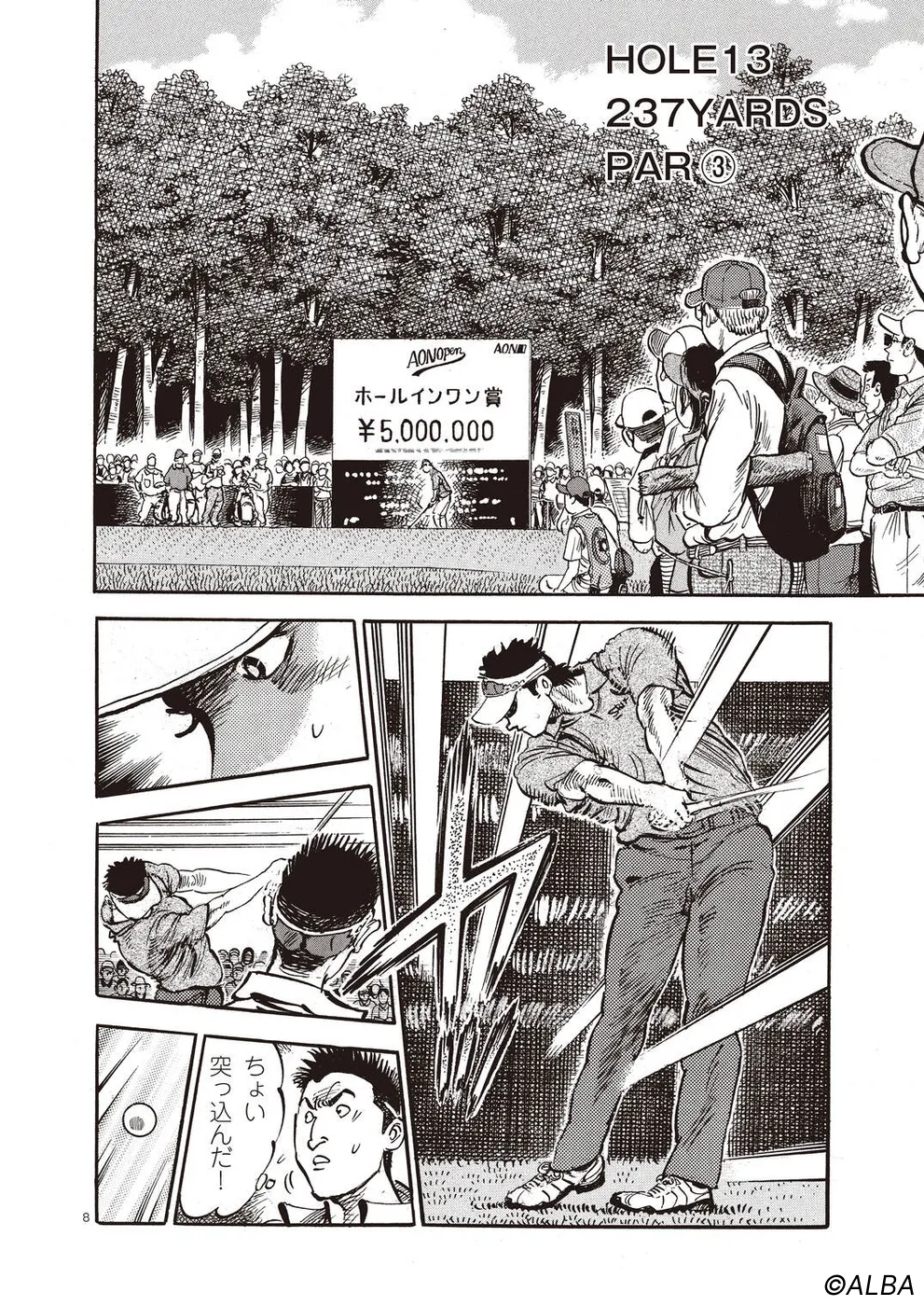 【第62巻あらすじ】AONオープン二日目。一平の仕掛けなどもあり、初日に思うようなスコアを出せなかった一丸だが、人が変わったように猛チャージをかける。そして、スーパーアマとして注目を浴びる松井英樹は、明らかに一丸を意識したプレーをとるようになる。決勝ラウンドはどうなる!?
