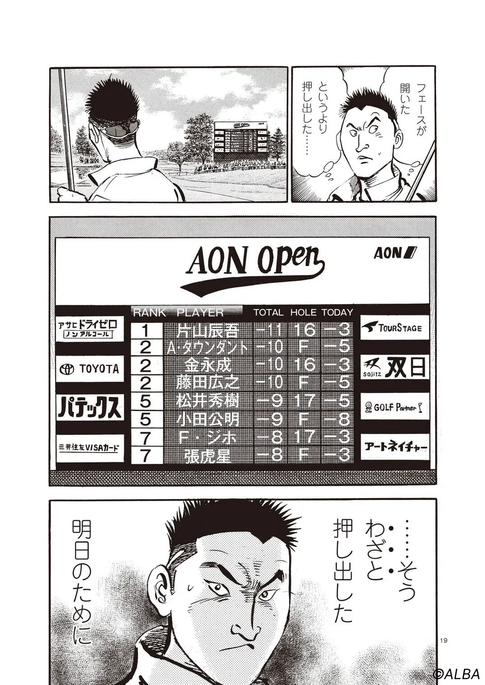 【第62巻あらすじ】AONオープン二日目。一平の仕掛けなどもあり、初日に思うようなスコアを出せなかった一丸だが、人が変わったように猛チャージをかける。そして、スーパーアマとして注目を浴びる松井英樹は、明らかに一丸を意識したプレーをとるようになる。決勝ラウンドはどうなる!?