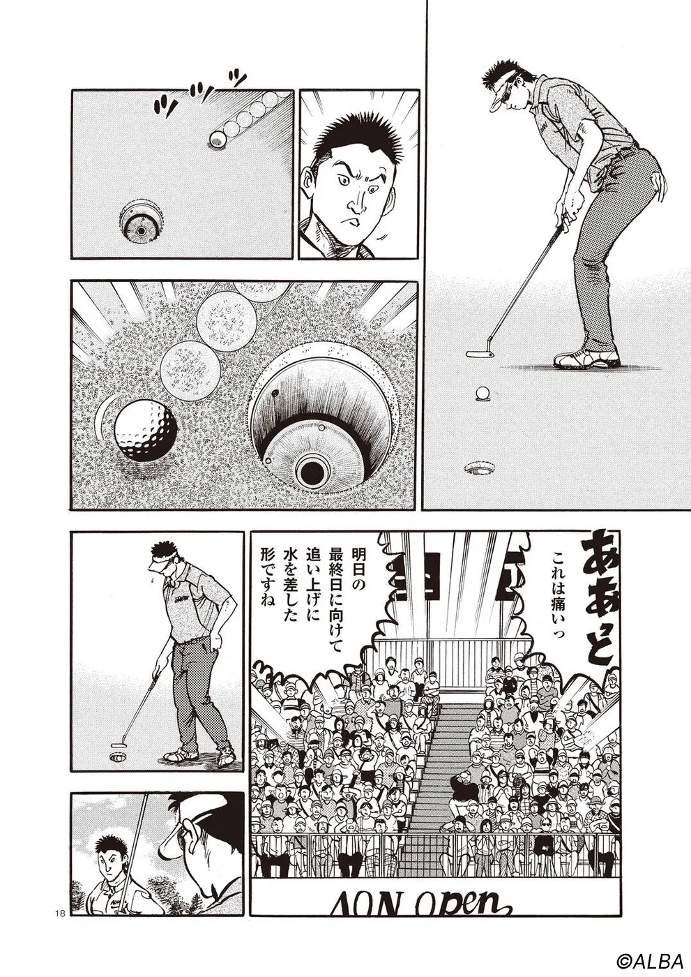 【第62巻あらすじ】AONオープン二日目。一平の仕掛けなどもあり、初日に思うようなスコアを出せなかった一丸だが、人が変わったように猛チャージをかける。そして、スーパーアマとして注目を浴びる松井英樹は、明らかに一丸を意識したプレーをとるようになる。決勝ラウンドはどうなる!?