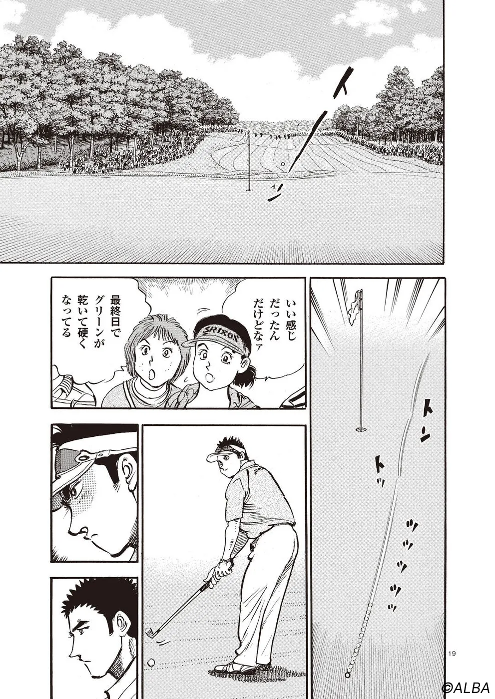 【第63巻あらすじ】スーパーアマチュア松井英樹の思惑もあり、最終日を同組でラウンドすることとなった一丸。案の定、お互いが相手のみを意識するマッチプレーの様相を呈し、高いレベルでの攻防が繰り広げられる。一方、桂のサポートを受ける一平も着実に上位を目指す。大混戦の結末は!?