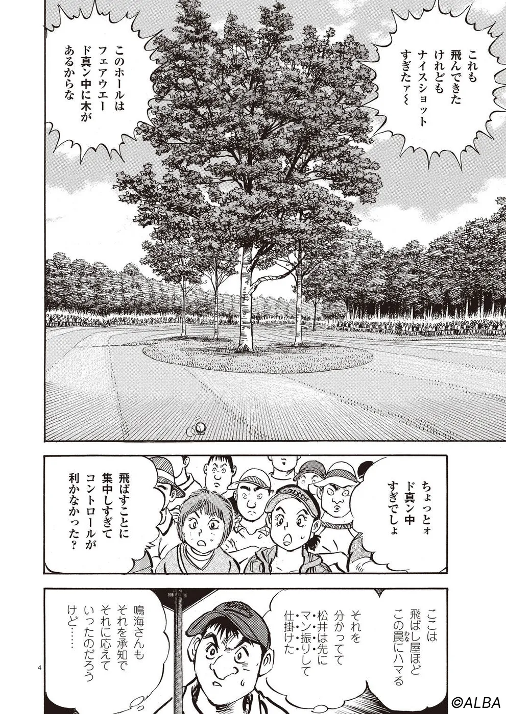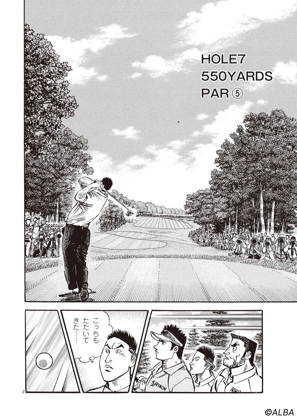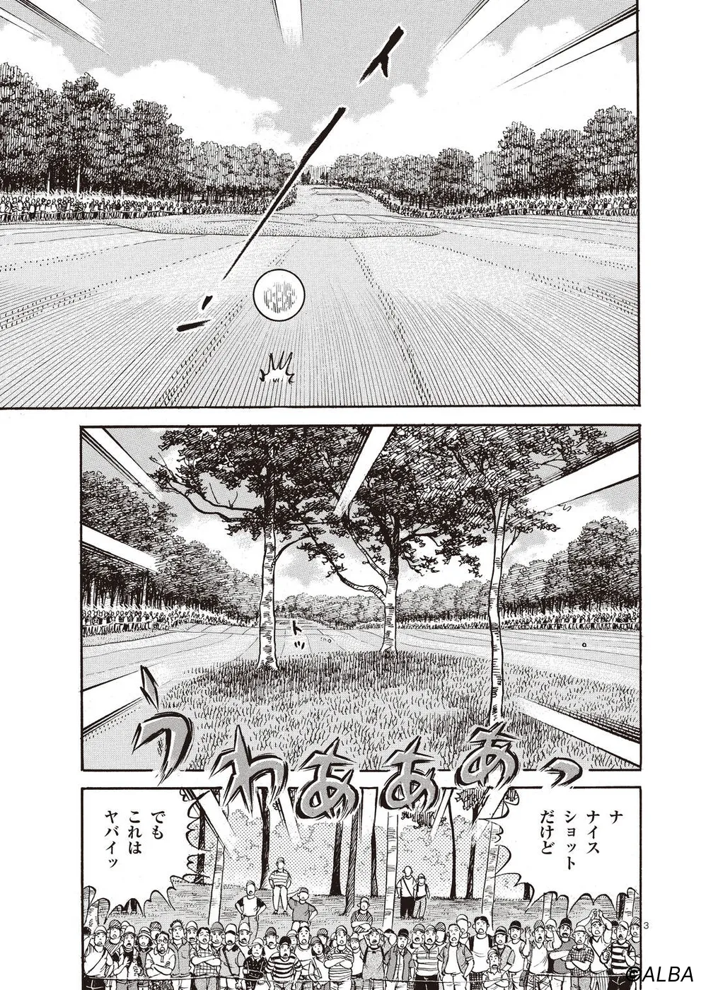 【第64巻あらすじ】スーパーアマチュア・松井英樹とのペアリングとなったAONオープン最終日。序盤から飛ばす二人は一進一退の攻防を繰り広げながらどんどんスコアを伸ばしていく。いつの間にか優勝争いに食い込んでいるのだが、お互いのプレーしか目に入っていないようなプレーが続く。
