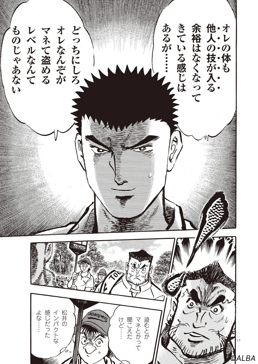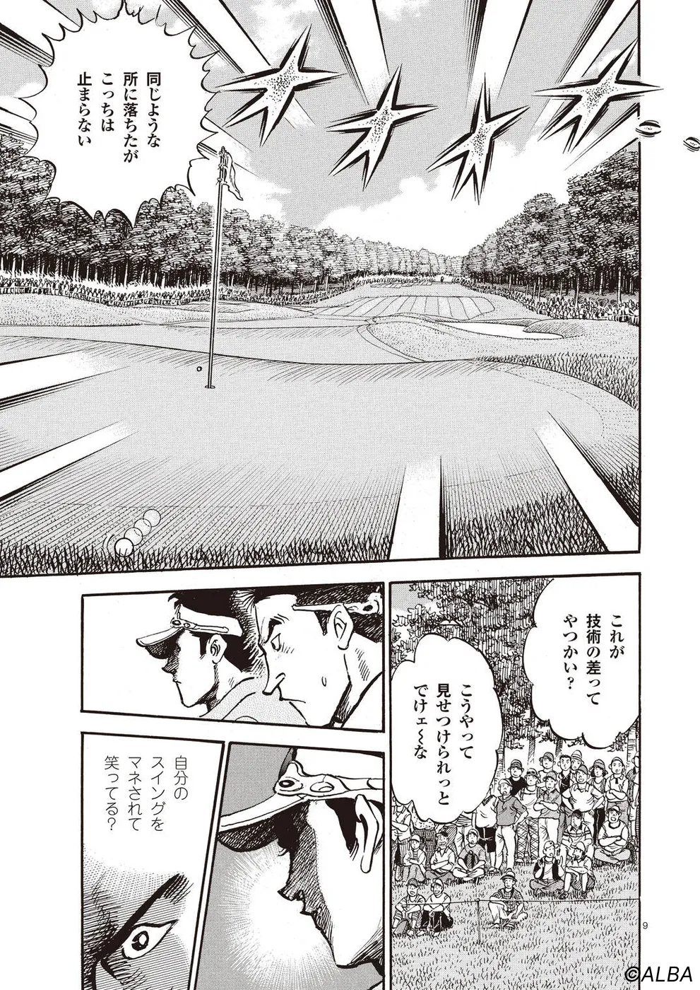 【第64巻あらすじ】スーパーアマチュア・松井英樹とのペアリングとなったAONオープン最終日。序盤から飛ばす二人は一進一退の攻防を繰り広げながらどんどんスコアを伸ばしていく。いつの間にか優勝争いに食い込んでいるのだが、お互いのプレーしか目に入っていないようなプレーが続く。