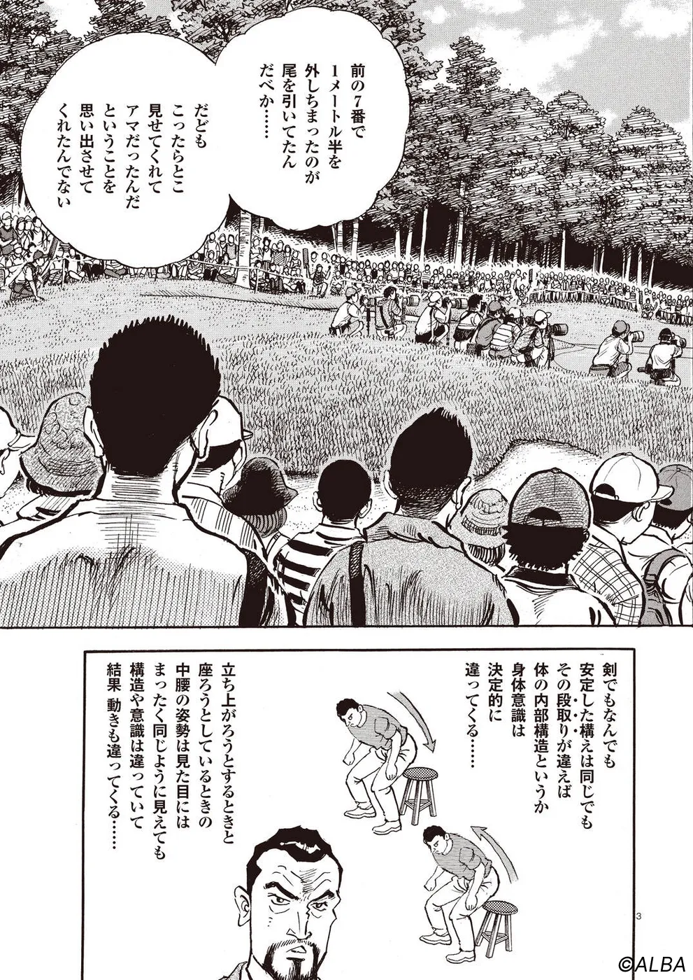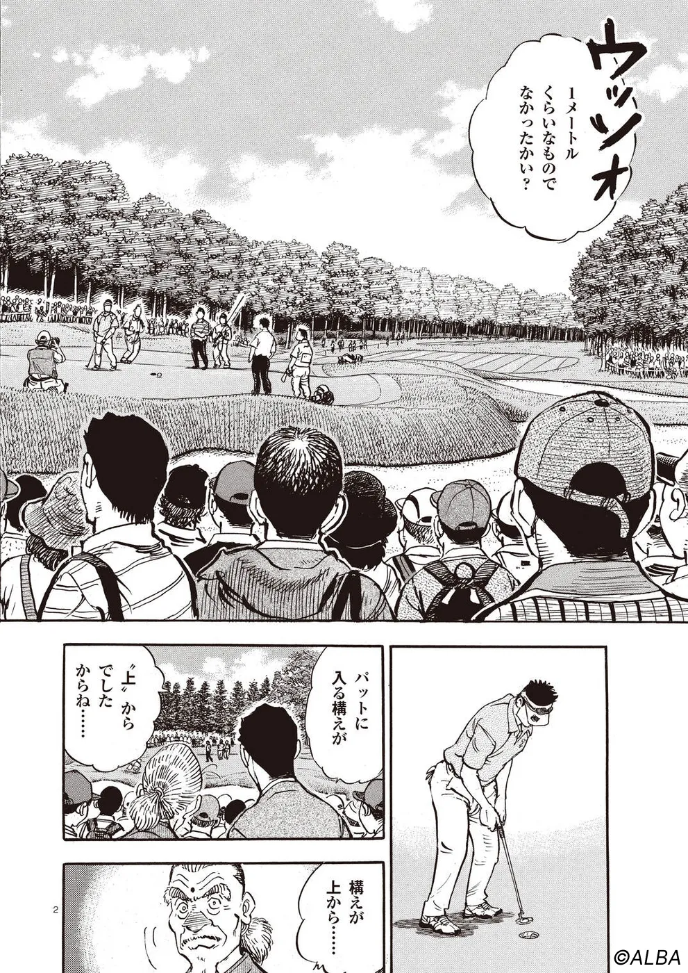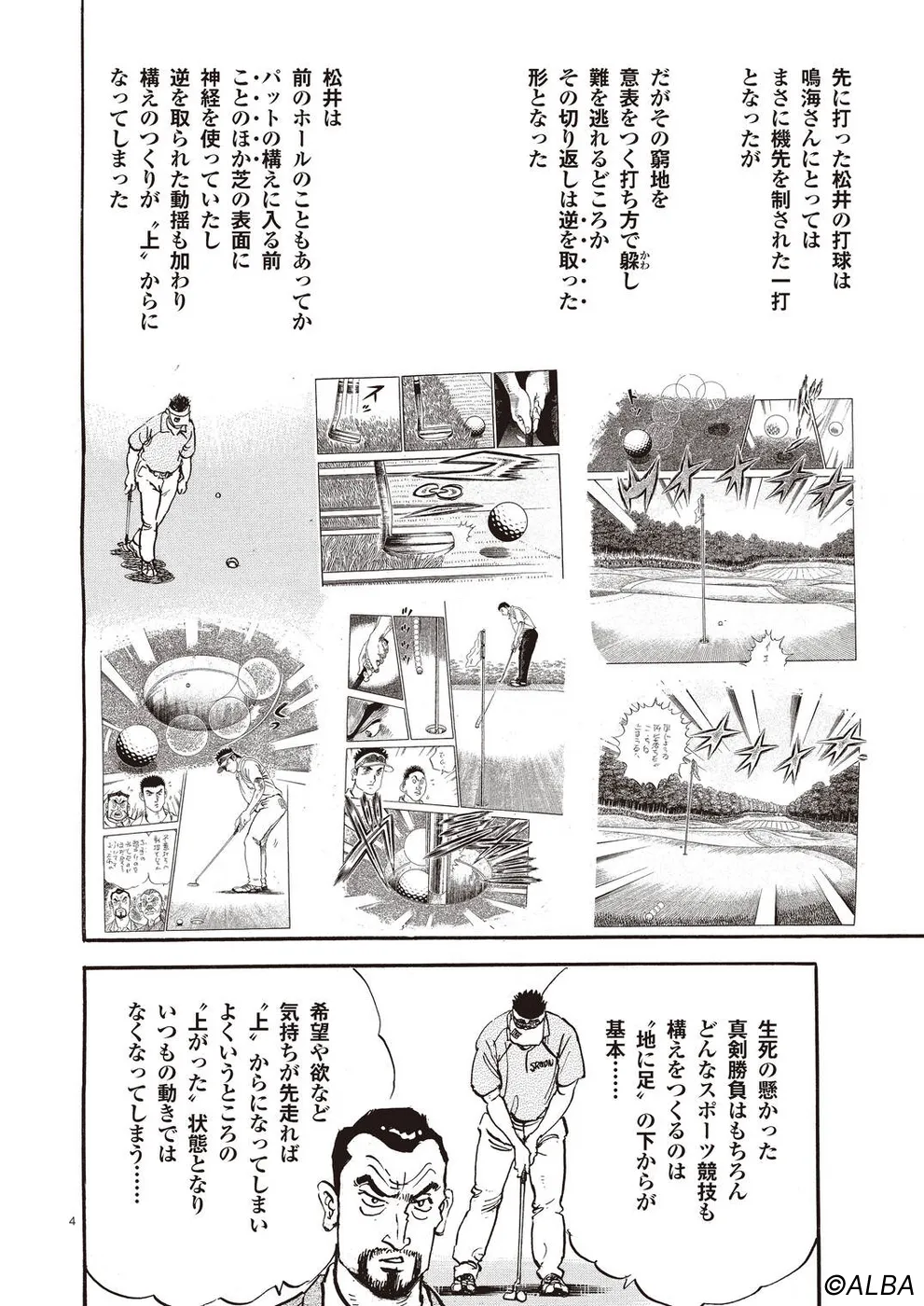 【第64巻あらすじ】スーパーアマチュア・松井英樹とのペアリングとなったAONオープン最終日。序盤から飛ばす二人は一進一退の攻防を繰り広げながらどんどんスコアを伸ばしていく。いつの間にか優勝争いに食い込んでいるのだが、お互いのプレーしか目に入っていないようなプレーが続く。